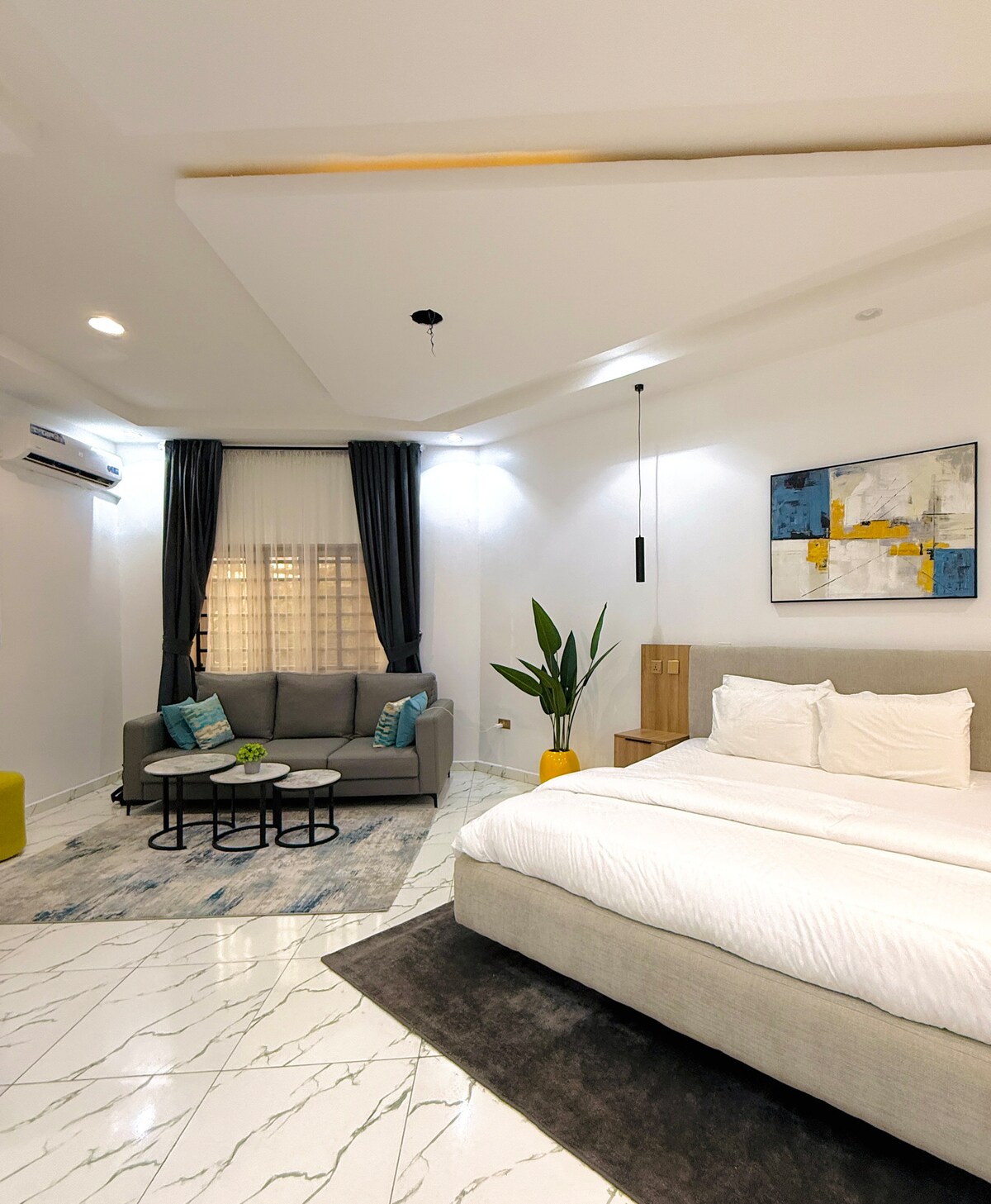 Élvezd a nonstop működő invertert, a gyors Wi-Fi-t, a Netflixet elérhető okostévét, a teljesen felszerelt konyhát, a mosógépet, a légkondicionálót, a hordozható ventilátort és a vízmelegítőt. A Jahi 1BR Luxury Service Apartment egy modern, egy hálószobás, szolgáltatásokat nyújtó apartman a következő címen: Jahi Ahmed Gambo Saleh Cres, Abuja, 900108, Federal Capital Territory, NG, Abuja. Tökéletes családok, párok, turisták, üzleti utazók és digitális nomádok számára. Sznúker, virtuális valóság és játékok. Jabi Abuja No. 1 King Emperor Street, black onyx Jahi by Gilmor