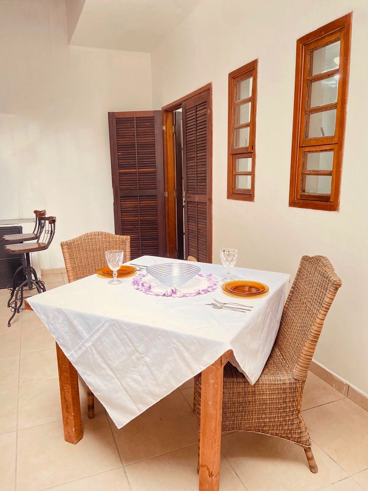 Teljes felszerelés a párnak a főépület hátsó részén, egy fedetlen parkolóhellyel, saját fürdőszobával és kültéri zuhanyzóval. 1 db kétszemélyes ággyal, 2 ventilátorral, 4 égős tűzhellyel, minibárral és minden konyhai eszközzel rendelkezik. Ingyenes lepedőt és törölközőt biztosítunk, szükséges strandtörölközőt hozni (a fürdés a strandon nem megengedett). Nagyszerű elhelyezkedés: piacok, gyógyszertár és benzinkút közelében, 600 méterre a Lázaro strandtól, és a Domingas Dias és Sununga strandok közelében.