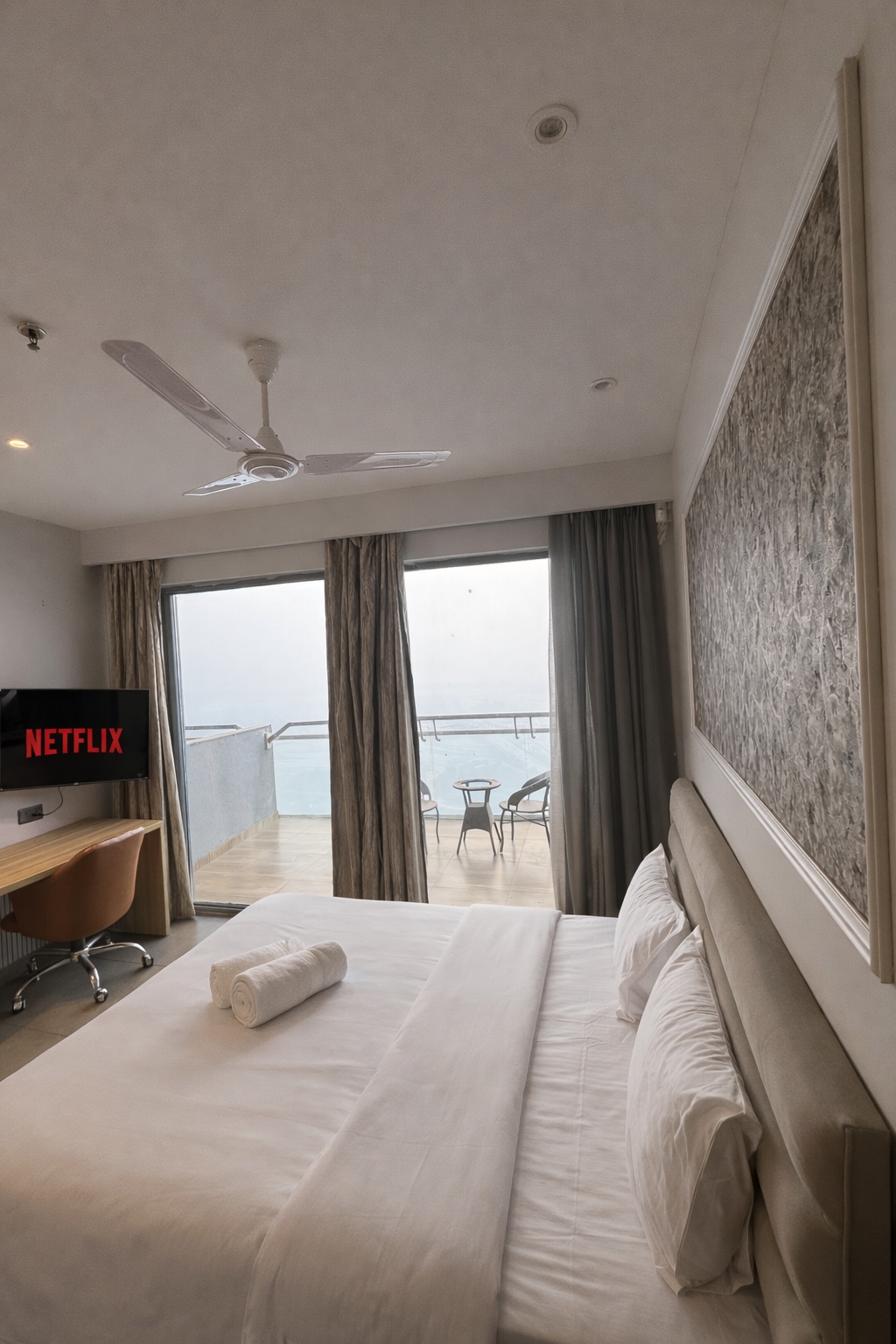 Welcome to The Beige Haven a refined luxury studio located on the 30th floor, offering a calm, elegant space with beautiful skyline views Designed in soft beige tones, this studio is perfect for guests who appreciate comfort, privacy, and a peaceful high-rise stay Large windows fill the studio with natural light, while the thoughtfully curated interiors create a warm and relaxing atmosphere. Whether you are visiting for work or leisure, this space offers the ideal blend of style and convenience