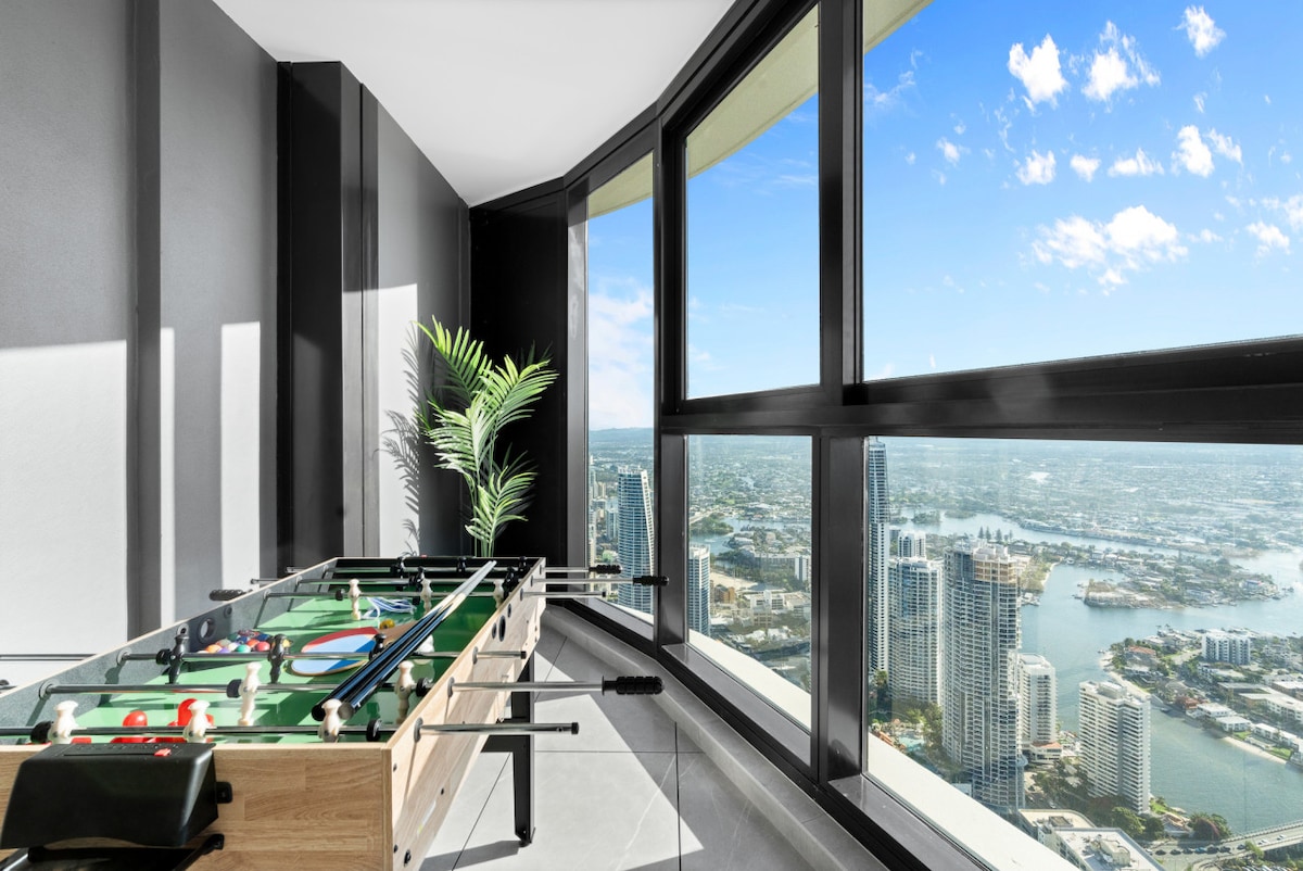 Magas emeleten található tengerparti lakás, falról mennyezetig érő ablakokkal, saját erkélyrel, kilátással az óceánra és közvetlen hozzáféréssel a Surfers Paradise strandhoz az út túloldalán. Az apartmanban king méretű ágy található a hálószobában, és kihúzható kétszemélyes kanapéágy a társalgóban. Teljesen felszerelt konyha, nagy sebességű Wi-Fi, légkondicionáló, TV Netflix-szel és YouTube-on, ingyenes parkolás és teljes privát mosoda. A vendégek használhatják az edzőtermet, a gyógyfürdőt, a szaunát, a medencét, valamint a medence melletti és a tetőteraszra kihelyezett grillezőket.