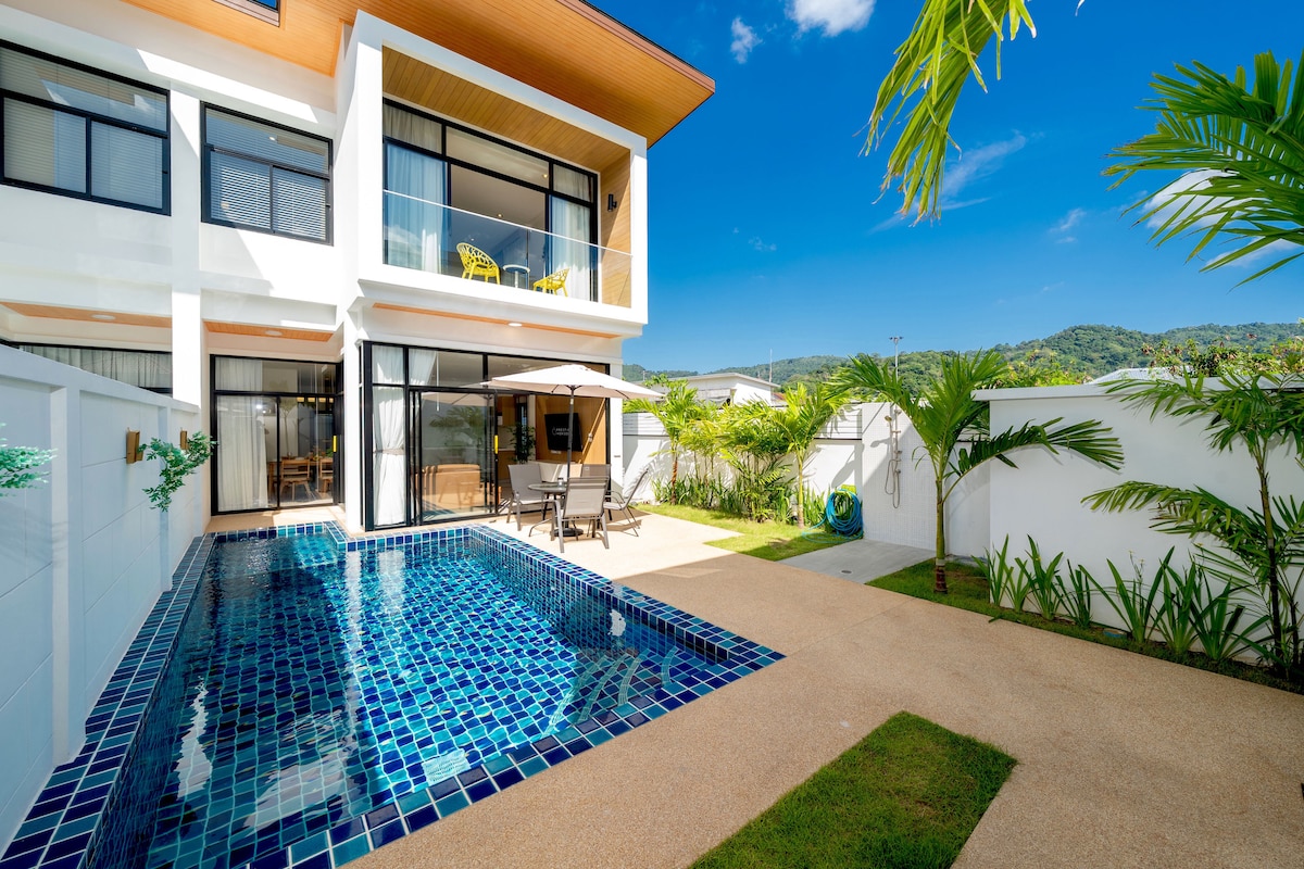3 hálószobás medencés villa, üdülőhely, sétálni lehet a Surin Beach-re