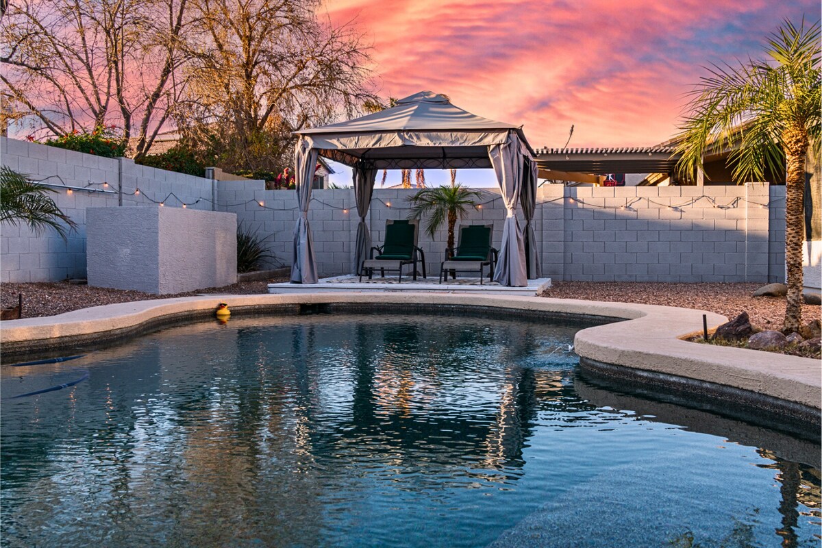 Dőlj hátra, és lazíts ebben a nyugodt, stílusos térben. Élvezd a kényelmes fekvőfoteleket és kanapékat, vagy lazíts a medence és az árnyékos terasz mellett. Ez a ház tökéletes sok élményhez! Gyere és pihenj egy családi nyaraláson, használd ezt az otthont a Lake Pleasant kalandjaidhoz, vagy csak szívd magadba a napot! Ha golfozás közben keresel szálláshelyet, vagy amíg részt veszel a tavaszi edzésen, a házunk remek helyen van a következő kiruccanásodhoz.