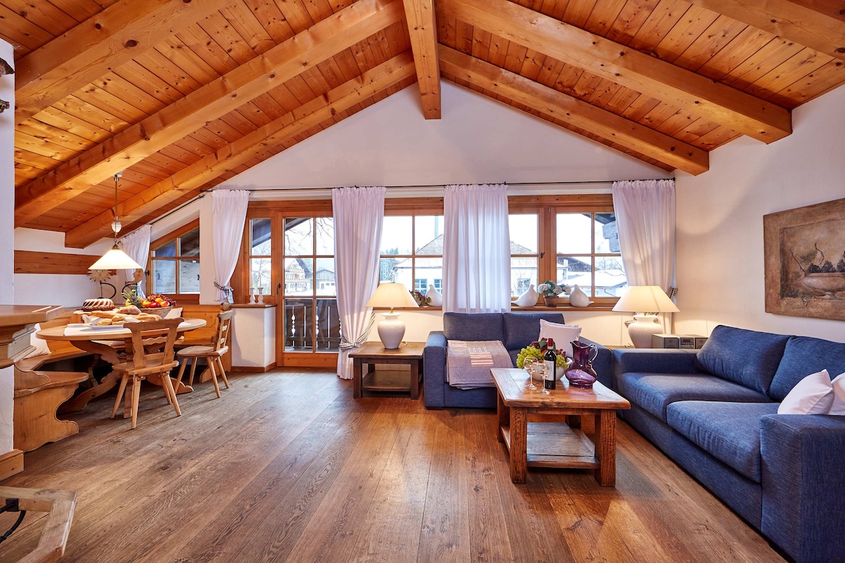 Gemütlicher Rückzugsort im bayerischen Landhausstil: Dieses Komfort Apartment mit separatem Schlafzimmer ist ideal für Paare. Der helle Wohnbereich mit integrierter Küche und Essecke lädt zu entspannten Abenden ein, der Balkon bietet frische Bergluft direkt am Waldrand von Farchant. Wanderwege und Kuhfluchtwasserfälle sind fußläufig erreichbar, Garmisch nur wenige Minuten entfernt.