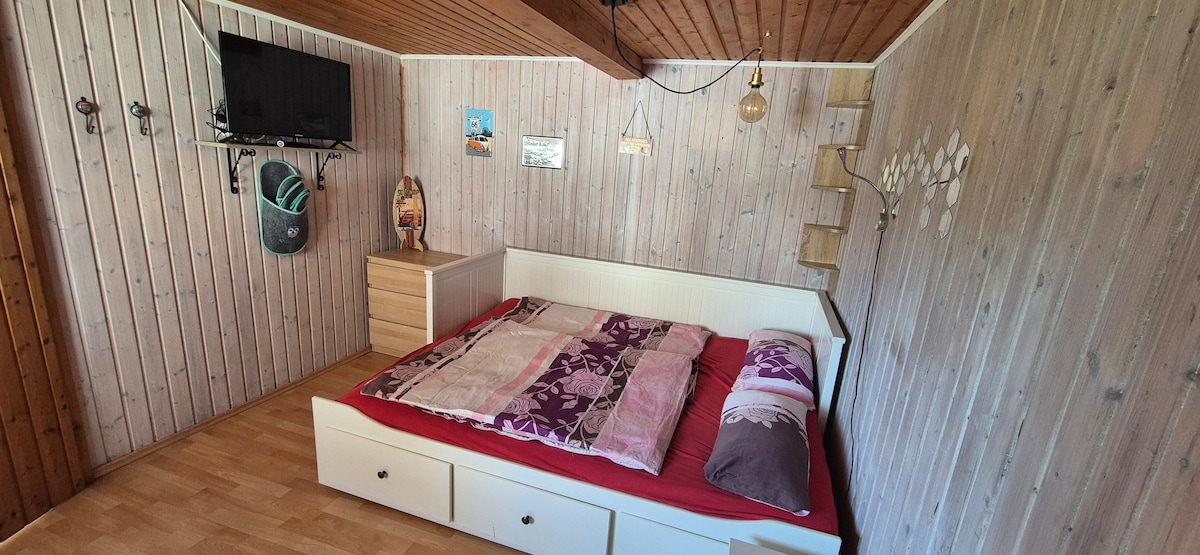Felújítottunk egy apartmant Rettenbach am Auerbergben. Egy apartman külön bejárattal és egy kétszemélyes ágy (emeletes ágy) a galériában; egy "rejtekhely“ két fő számára egy jó óra autóútra Münchentől. Napközben a vendégek a bajor fehér-kék égboltra tekinthetnek, éjszaka pedig az ágyból figyelhetik a csillagokat – Ostallgäuban is egy kicsit fényesebbnek tűnnek, mint Münchenben az alacsonyabb szórt fény miatt.