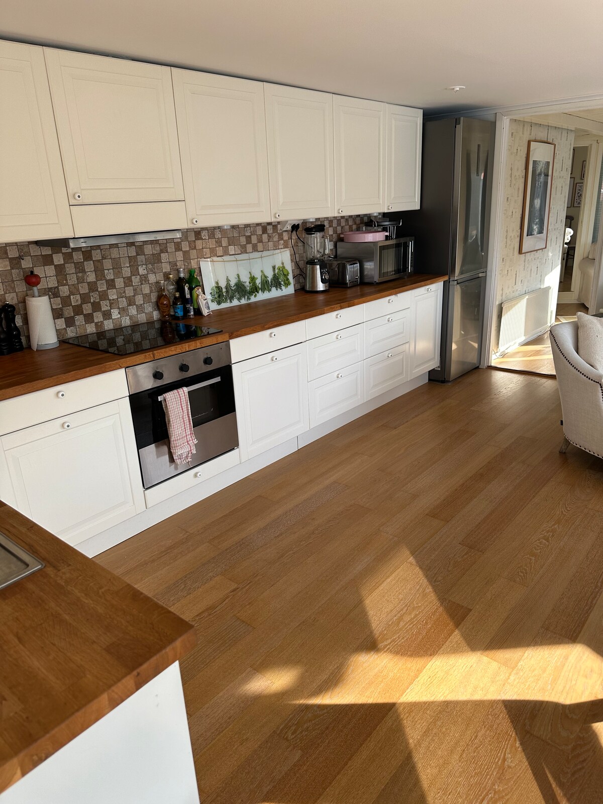 Welcome to our elegant and peaceful home just 10 minutes from Växjö. This cozy two-story house is perfect for couples, families, or friends. It features two bedrooms on separate floors for added privacy. The first-floor bedroom has a queen-size bed, comfortable bedding, and a desk. The ground-floor bedroom offers a queen-size bed and a dresser for storage. Please note that the terrace balcony is not included in the listing.