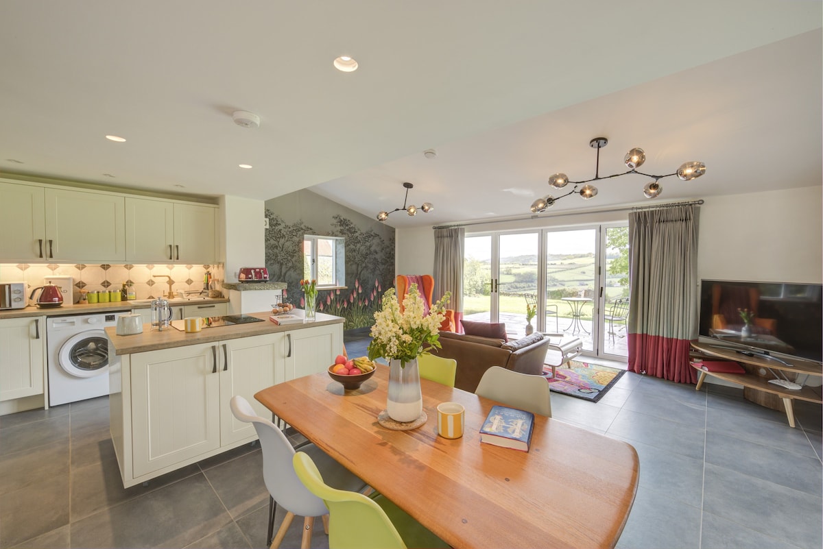 Századi edzőház karakteres, és készen áll a luxuspihenésre. A nyitott nappaliterületről kivételes kilátás nyílik, és ha változtatni szeretnél, egy nagy okostelefonos tévé és egy jó minőségű, széles sáv gondoskodik a szórakozásról. A konyhához indukciós tűzhely, sütő, mosogatógép és mosógép, valamint minden olyan fazék, serpenyő és eszköz tartozik, amelyre szükséged van a finom ételek elkészítéséhez. A zuhanyzó/vécé kényelmesen el van rejtve egy sarokban. Sétálj fel a jellegzetes tölgyfa lépcsőn, és találd meg az emeleti hálószobát lenyűgöző kerek ablakával. Legfeljebb három fő fér el egy kétszemélyes franciaágyon és egy különálló egyszemélyes ágyon, és van hely egy csecsemőágynak is. A Coach House ideális választás egy romantikus kiruccanáson részt vevő párnak, vagy egy kisgyermekes családnak, akik biztonságos helyet keresnek a pihenéshez és a játékhoz. FŐBB JELLEMZŐK - Egy hálószoba – az emeleten, king-size franciaággyal és egyszemélyes ággyal, hely utazóágynak. - Egy zuhanyzó/WC – a földszinten. - Háromig alszik, és csecsemő. - Saját külső terasz kilátással, 1,5 hektáros biztonságos rét és kert közös használata. - Kutyákat szívesen látunk, legfeljebb két kis felár ellenében. - A kisgyermekeket szívesen látjuk (de előfordulhat, hogy a biztonság érdekében lépcsőházat kell magaddal hoznod). - Smart TV (Netflix, iPlayer, Freesat stb.). - Jó minőségű szélessávú/Wi-Fi (ingyenes). - Indukciós főzőlap, sütő, mikrohullámú sütő, hűtőszekrény (szükség esetén fagyasztó), mosogatógép. - Étkezőasztal négy főre, két bőrkanapé. - Mosógép (és szükség esetén szárítógép használata). - Padlófűtés (környezetbarát légáramú hőszivattyúkkal). - Faégő, az első kosárnyi rönkök ingyenes. A Coach House hétre (pénteki nap), hétvégi és hétvégi rövid szünetekre foglalható le.
