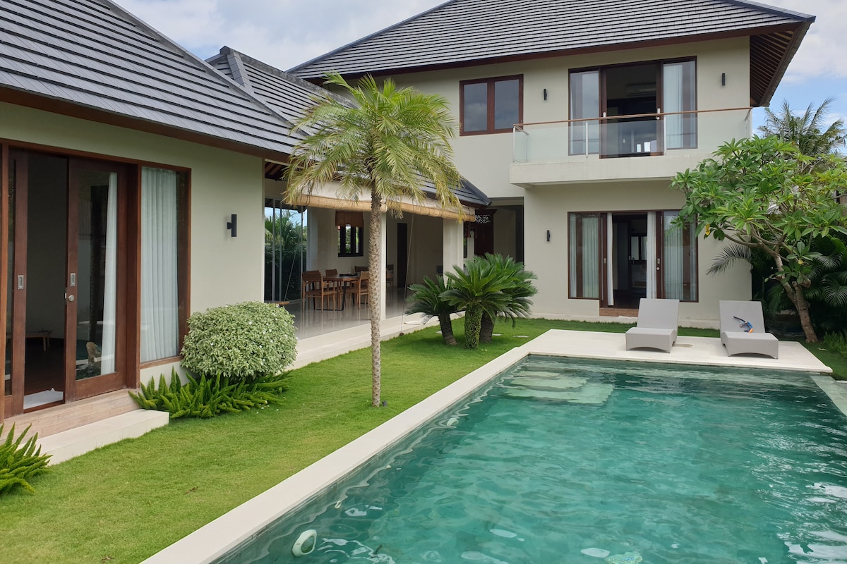 ✨ Luxury Private Villa in Pererenan 🚗 Free airport pickup for stays of 5+ nights 🛏️ 3 spacious ensuite king bedrooms with shower, bathtub & rice field view balcony 🌾 1,800 sqm private rice field backyard with open green views 🏊 18-meter private pool with full-day sun 🏡 Large open-plan living, dining & kitchen area (fully air-conditioned) 🌿 Quiet, private, surrounded by nature — no nearby construction 👥 Ideal for families & groups ✅ Fully licensed villa, compliant with local regulations