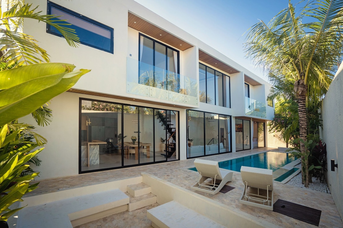 Lava Loft – A Luxurious Volcanic-Inspired Retreat Nestled in Pererenan, Lava Loft is a bold, modern 4-bedroom villa with a sleek black design. The main house features three elegant bedrooms, a cinema-style living room, and an upstairs lounge with a pool table. An attached private unit offers its own kitchen, living room, and entrance for added privacy. Just minutes from cafés, surf, and sunsets, this unique retreat blends luxury with Bali’s vibrant energy.