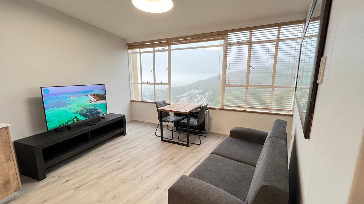 Ez a világos és tágas egy hálószobás lakás lélegzetelállító kilátást nyújt a Táblára és Fokváros környékére. Tartalmaz egy extra hosszú franciaágyat, korlátlan wifi-t, erkélyt, mosogatógépet, sütőt, mosodai felszerelést és edzőtermet egy éjjel-nappal biztonsági ellenőrzés alatt álló épületben. Grillterülettel és szabadtéri zuhanyzóval is rendelkezik a szörfösök számára. A magasan elhelyezkedő, félreeső erkélyről megfigyelheted a népszerű partszakaszt látogató tengeri élőlények sokaságát, és világszínvonalú naplementét élvezhetsz teljes magánéletben.