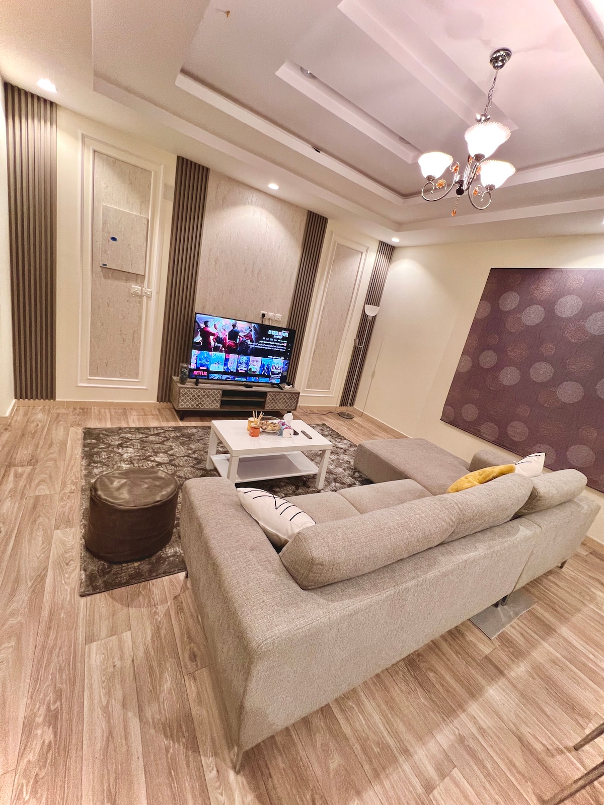 Modern & Cozy Apartment in the Heart of Tabuk Unwind in this stylish 1-bedroom apartment. Enjoy a spacious living area, and a comfy bedroom with hotel-quality linens. Relax and chill on the modern living room. Located steps from trendy cafes, restaurants, and attractions. Amenities include high-speed Wi-Fi, a workspace, coffee corner, and free parking. Your perfect getaway awaits—book now!