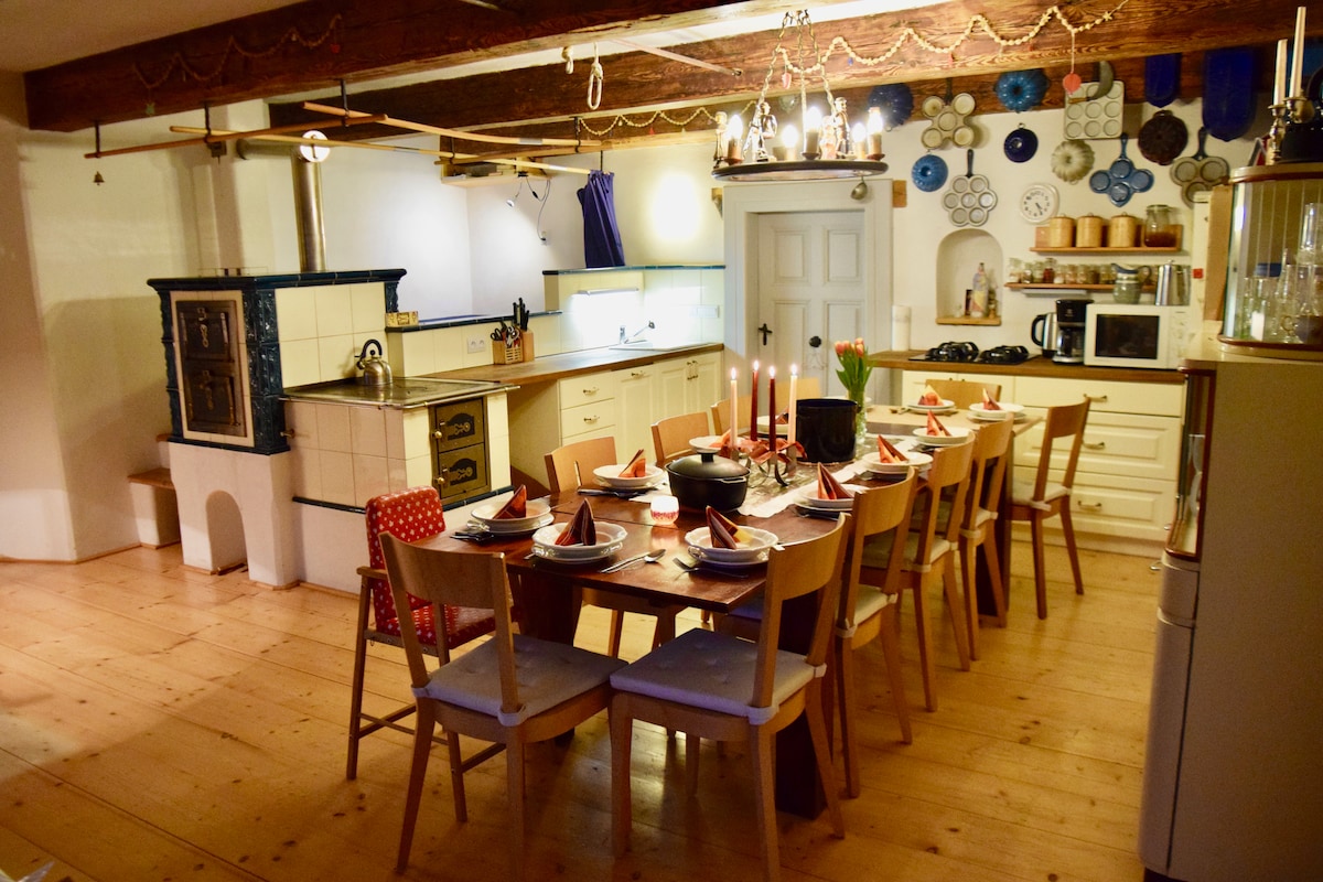 Üdvözlünk több mint 400 éves, bájos villánkban – egy egykori plébánián, egy barokk templom mellett, egy dombon, rétek és erdők békés környezetében. Ez a gyönyörű vidéki szállás rengeteg helyet kínál családoknak, baráti társaságoknak és különleges alkalmakra. Élvezd a tágas kertet, az ízlésesen berendezett, történelmi bútorokkal és műalkotásokkal díszített szobákat, valamint a meleg, barátságos légkört – ideális születésnapi ünnepségekhez, közös hétvégékhez vagy pihentető napokhoz a természetben.