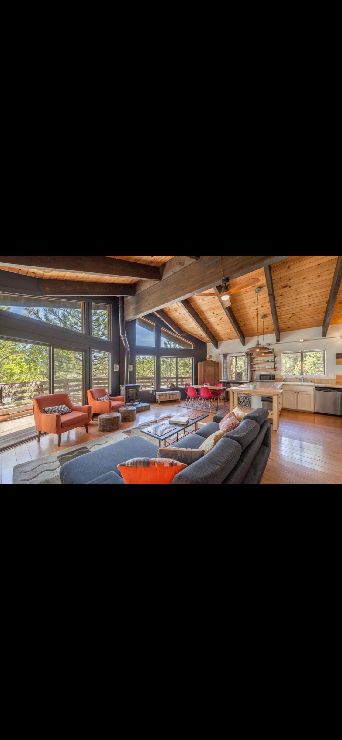 Lovely 3Br Cabin w/ Private DeckTruckee 8 vendég 3 hálószoba, 6 ágy 2 fürdőszoba A Truckee belvárosától mindössze 15 percre található bájos 3Br/2Ba víkendház tökéletes kiruccanást biztosít Tahoe-ban. Melegíts be a fatüzelésű kandallónál, pihenj a tágas teraszon, vagy csocsózz egyet a loftlakásban. Férőhelyek 8. INGATLAN ÁTTEKINTÉSE A boltíves mennyezettel, keményfa padlóval és modern hegyi dekorációval rendelkező nyitott alaprajz barátságos hangulatot teremt, rengeteg beltéri és kültéri térrel.