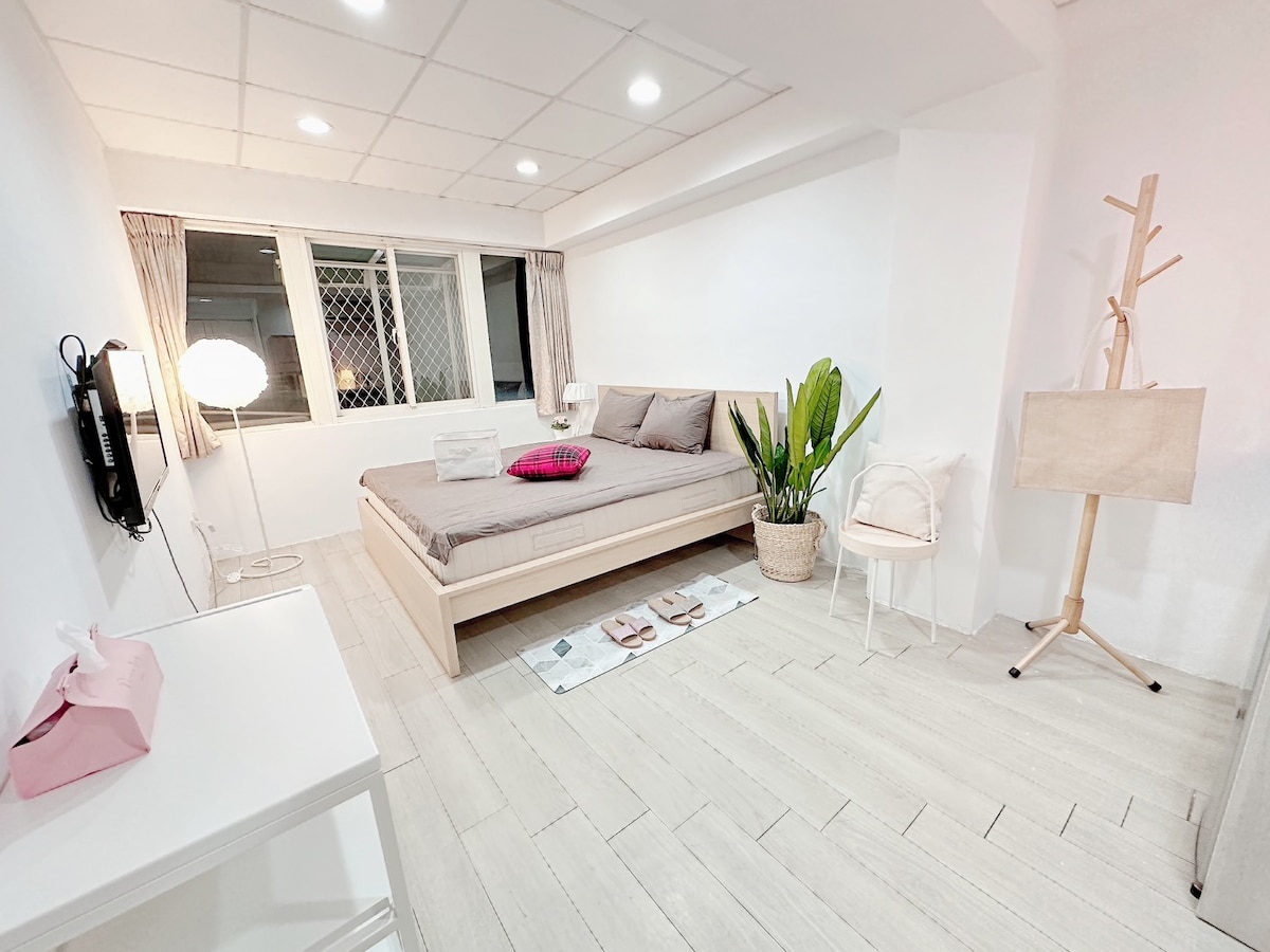 室內的灰白主色,配搭北美木紋銅色傢俱及家飾, 用心為您的居住空間提供沈靜優雅的感覺。日韓系電器的選用,不論是無線充電藍牙喇叭,大螢幕伸縮高清電視,都能滿足您對影音效果的要求。房源位於高樓內縮樓層,阻絕不必要的噪音並滿足您對景觀,安靜及隱私的要求。大樓並配有全天候警衛,住戶專屬電梯,公用大露台,以及地下收費停車場, 位處西門町核心路段,無論搭乘捷運或自駕都非常方便。A földtónusú belsőépítészet melegedést, nyugalmat, gyógyulást és elragadó légkört kínál. Szoba felszereltsége, beleértve a franciaágyat, a fürdőszobát zuhanykabinnal, a légkondicionálást, az intelligens 4K TV-t filmekkel/Netflix-szel, a WIFI internetet, az öbölvilágítást és a zenelejátszót vezeték nélküli kapcsolattal és USB töltőportokkal.