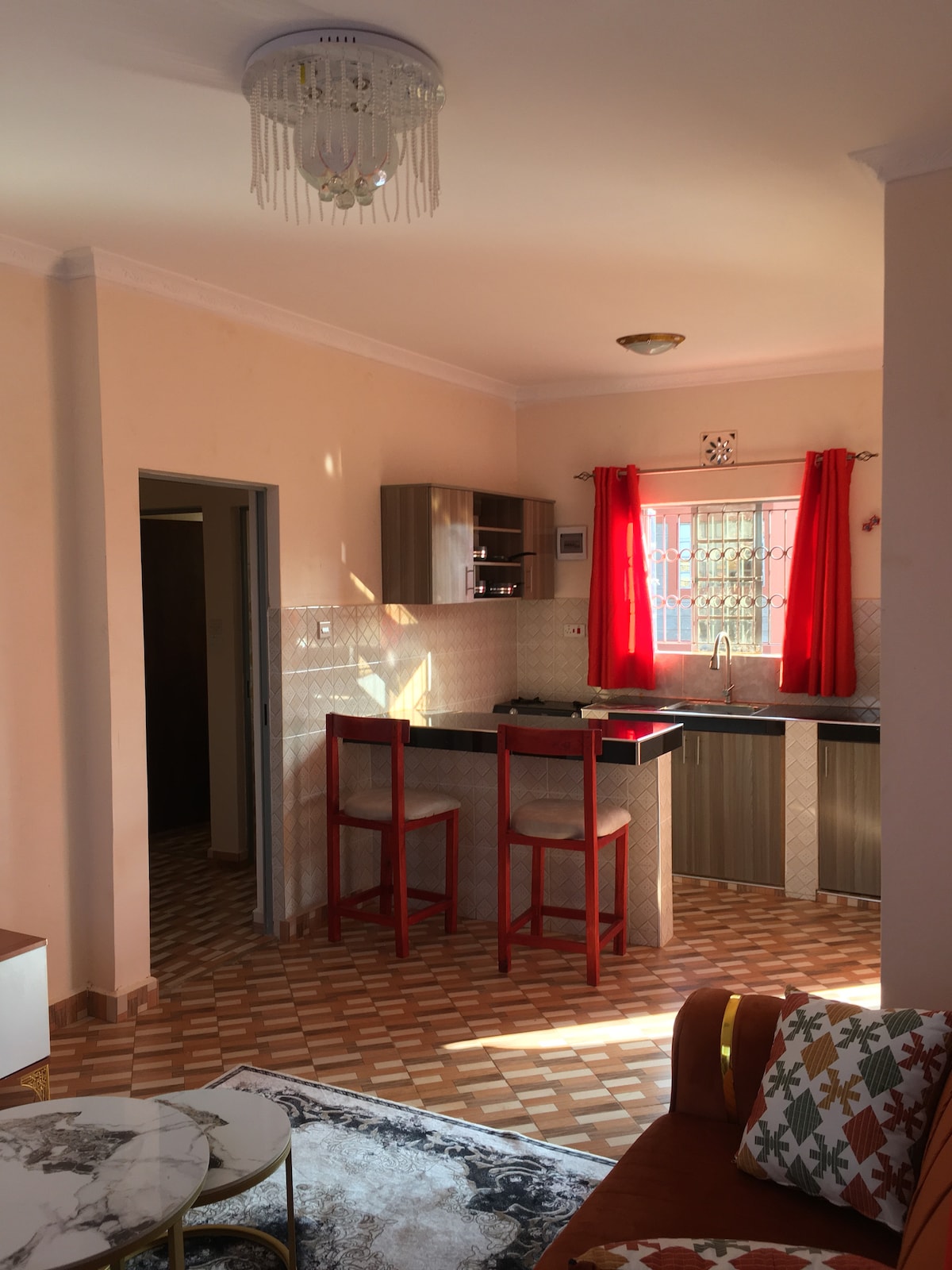 A clean studio apartment with Fast internet located at Voi Caltex area for easy access to the Tsavo,Voi CBD, 24/7 convenient stores, filling stations, SGR and popular bus services. There’s an in apartment hotel, kiosk and butchery on the ground floor. Java , Artcaffe and chicken inn are a 5 min walk a way. There’s also a fully equipped kitchen.All beddings are waterproof protected; these protectors , covers and all throws are changed with every new visit for proper hygiene.