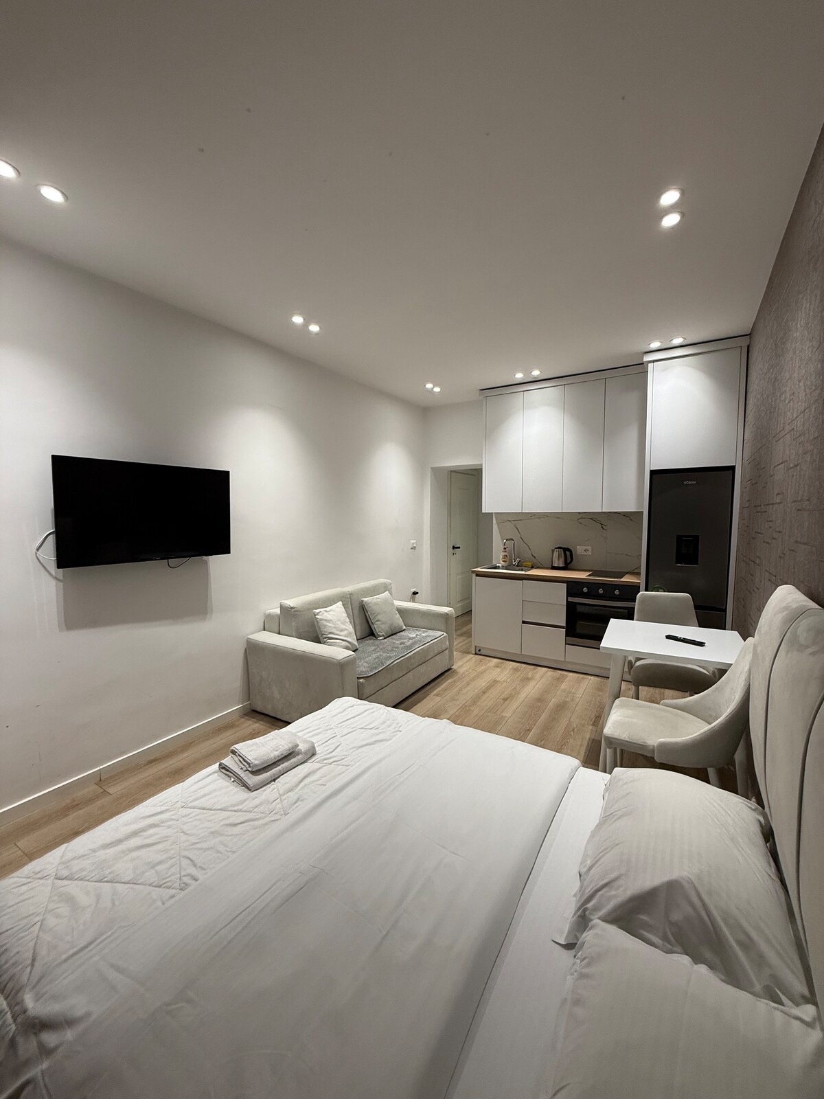 Ez a hangulatos stúdióapartman a tiranai Myslym Shyriben található, kiváló helyen, a Skënderbej tér és a Blloku közelében. A helyiségben egy multifunkcionális szoba található kényelmes ággyal, egy kis étkezővel és egy alapvető készülékekkel felszerelt teakonyhával. A modern fürdőszobában zuhanyzó és vécé található. A lakás a kényelem tökéletes keverékét nyújtja, amely ideális a város kulturális látványosságainak és élénk éjszakai életének felfedezéséhez.