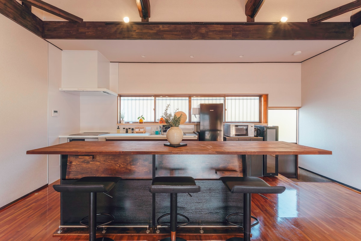 Unwind at VILLA ASO, a private villa reserved for one group per day, surrounded by the quiet nature of Aso. Enjoy open living with a spacious wooden deck and a sky deck for stargazing. Guests may visit nearby Aso Onsen free of charge during their stay (hours and holidays may vary). The villa features a private sauna, outdoor air bathing, and a Japanese-modern living space with a large projector. BBQ and self-cooking are also available, with a grill, charcoal (approx. 6kg), and tongs provided.