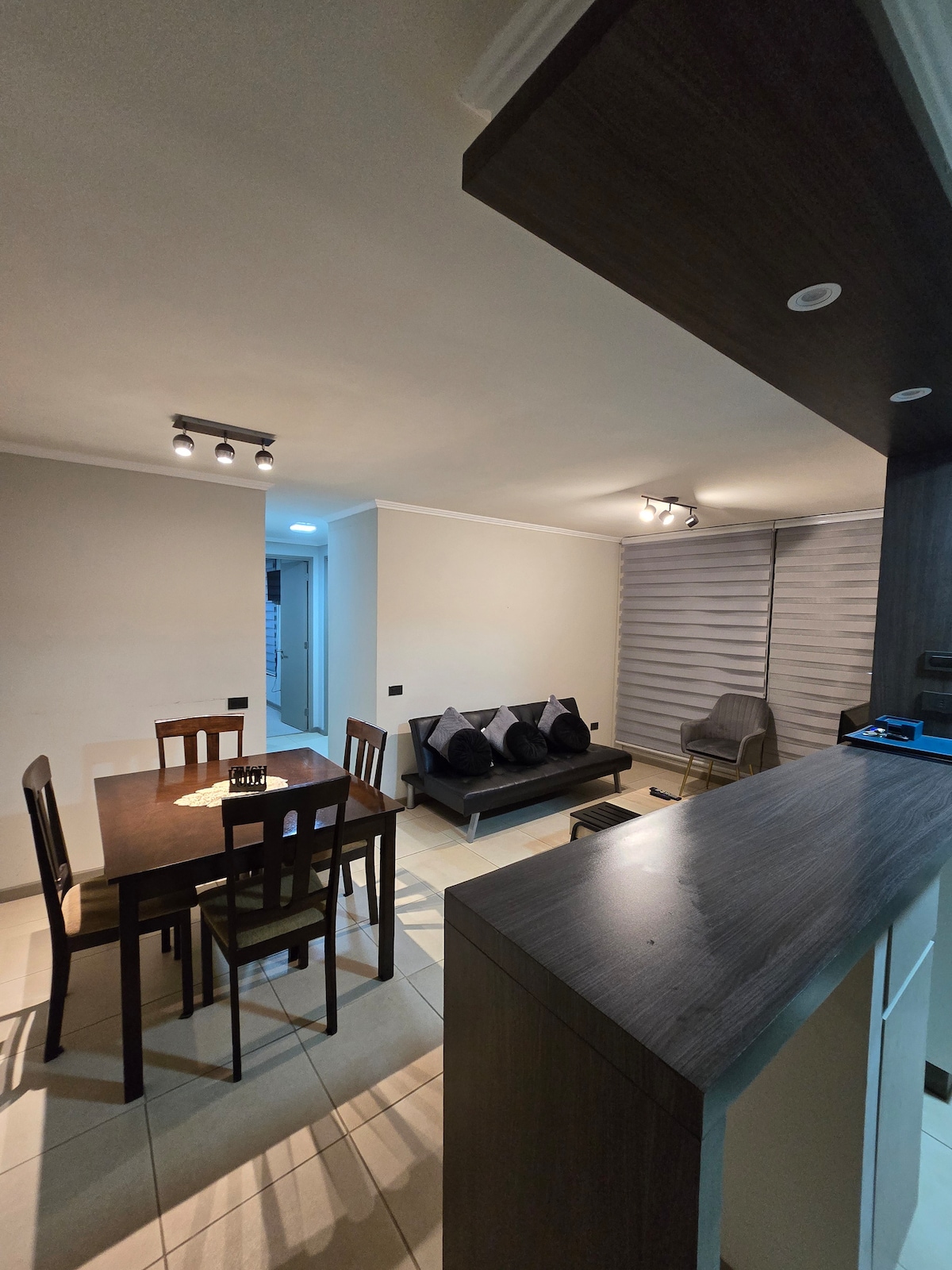 Tu familia estará cerca de todo cuando te quedes en este alojamiento céntrico. A menos de 200 metros de Mall, casino de juego, supermercados y universidades Departamento nuevo: Cocina completa equipada Habitación principal 2 plazas Habitación secundaria 1 1/2 plazas Futón TV Wifi Netflix Terraza Piscina Quincho Estacionamiento al interior del condominio NO se permiten Mascotas Fiestas o ingreso de personas fueras de las declaradas en la aplicación tampoco están permitidas