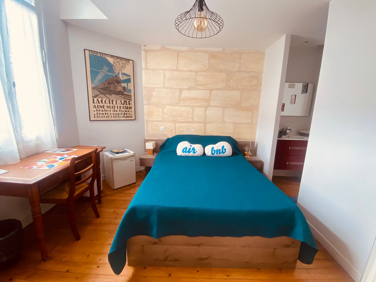 Ez a közel 40 m2-es, új, ízléssel díszített stúdió ideális Bordeaux meglátogatásához. Csendesen, a szálláshely minden kényelmet biztosít, amire szükséged van: - Wifi és TV - felszerelt konyha - légkondicionálás - zuhanyzó - minden ágynemű rendelkezésre állása - 350 méterre a buszmegállótól 20, 15 percre a Place de la Victoire-tól, 30 percre a St Jean de Bordeaux vasútállomástól - 1,7 km-re a Peixoto megállótól, B villamos - 15 🚲 percre kerékpárral a vasútállomástól - 3,6 km-re Bordeaux belvárosától