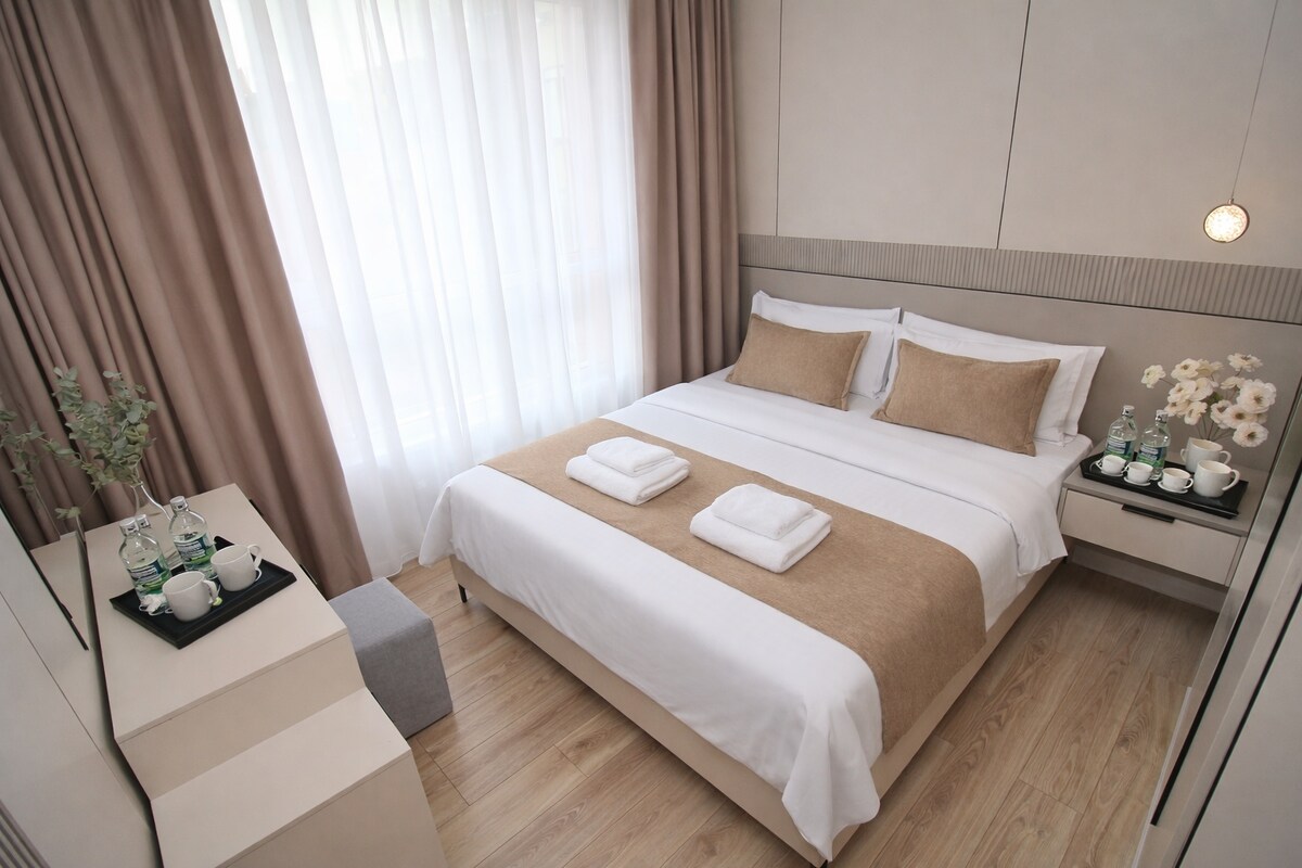 Dopamine apartment in the heart of the city! Nagyszerű hely a kényelmes tartózkodáshoz: • Tágas és világos nappali magas mennyezettel • Felszerelt konyha azoknak, akik szeretnek főzni • Hangulatos hálószoba elegáns kilátással a városra • Egy rövid séta üzletekhez, kávézókhoz és éttermekhez, parkokhoz, sétálóutcákhoz. Azért hoztuk létre ezt a helyet, hogy otthon érezd magad, és a város ritmusa mindig a közelben van.