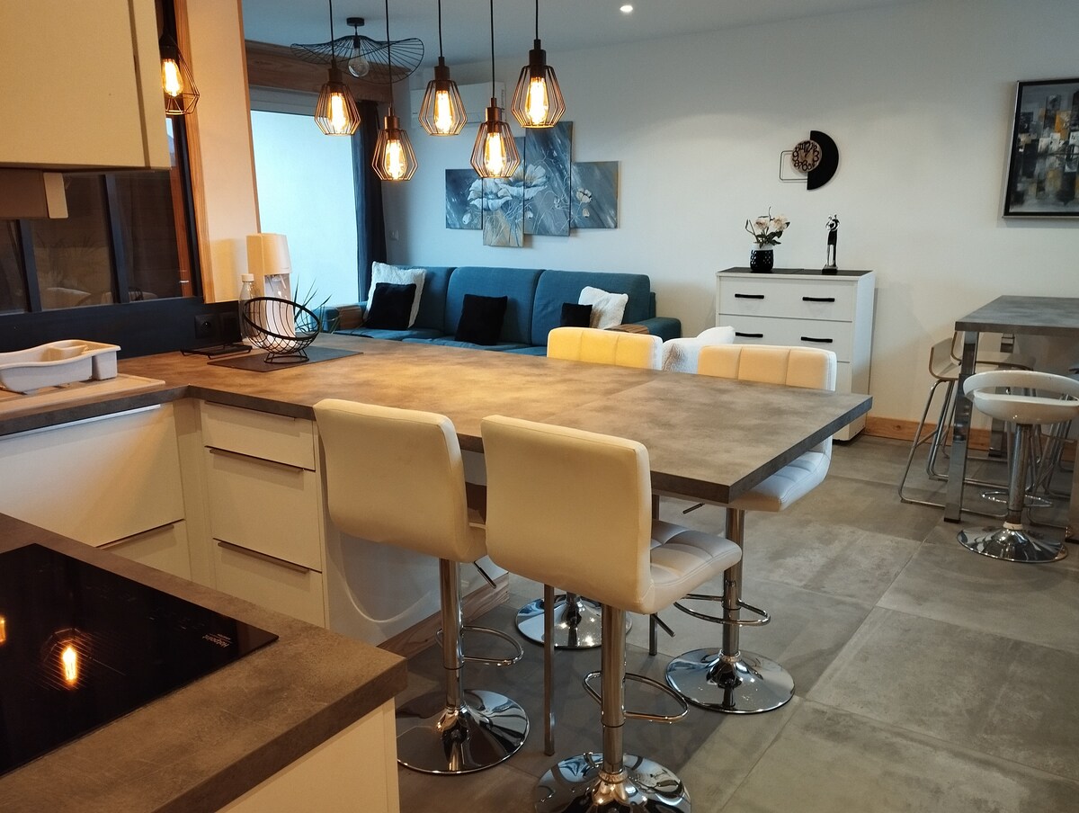 Lakás, 6. és legfelső emelet, természetesen lifttel megközelíthető, 60 m2 áll a rendelkezésedre, 5 percre Annecy városközpontjától és 10 percre a tótól. Lélegzetelállító kilátás a hegyre. Csendes, napfényes, tökéletes egy párnak. Hozzáférés a társasház privát parkolójához. A hálószoba 160-as franciaággyal van felszerelve. Júliusban és augusztusban legalább 4 éjszakára lehet foglalni. Heti kedvezmény. Az egészségügyi előírásoknak megfelelő takarítási protokoll.