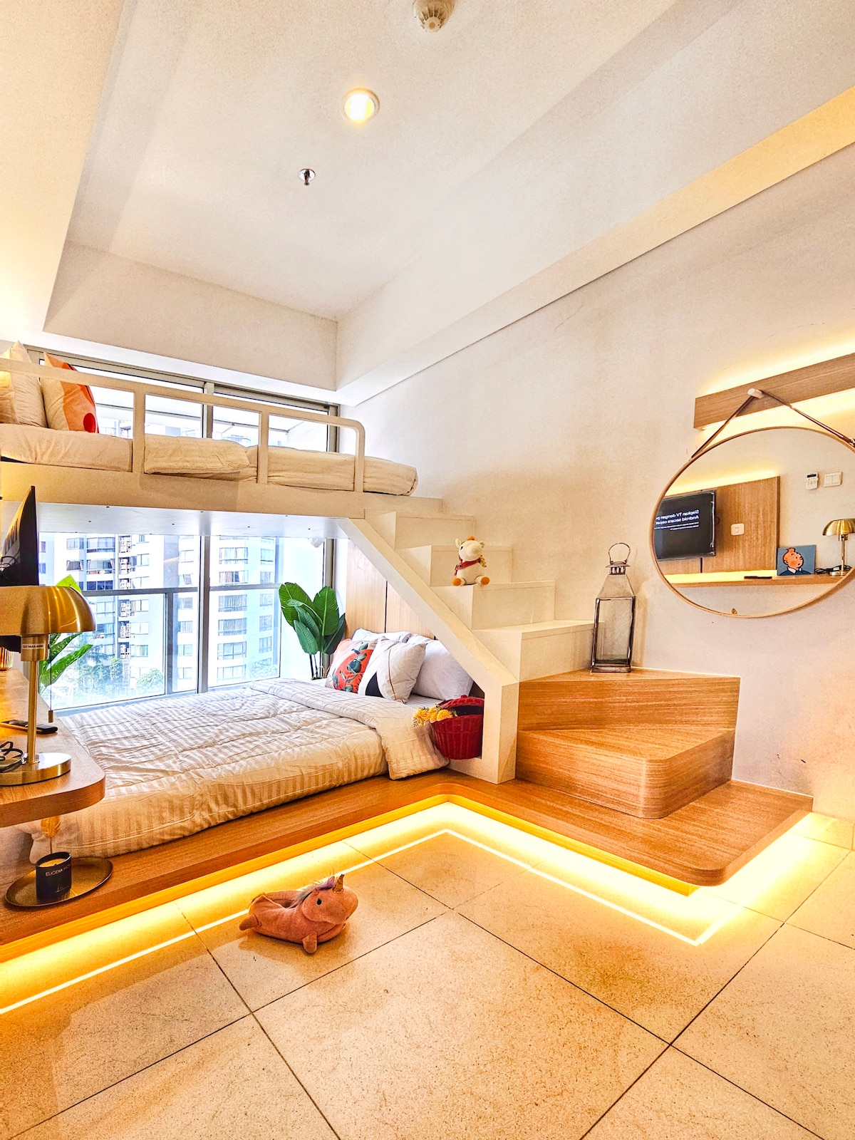 🌿 Minden foglalás egy áldás. Köszönjük, hogy nálunk szállnál meg – azokra a pillanatokra, amikor majdnem otthon vagy. Gyönyörűen megtervezett, tökéletes kis családok számára. Egy hálószobás szállás emeletes ágyas szobával (a gyerekek imádják!), és legfeljebb 4 fő számára alkalmas. A hely és az elrendezés jobb áttekintéséhez tekintsd meg a 2D-s alaprajzot a nappaliban található képek között – ez segít biztosítani, hogy minden megfeleljen az elvárásoknak 😊 Elhelyezkedés 🏬 Közvetlenül a HubLife és a Taman Anggrek bevásárlóközpont felett 🚶♂️ Sétálj a Central Parkba és a Neo Sohoba