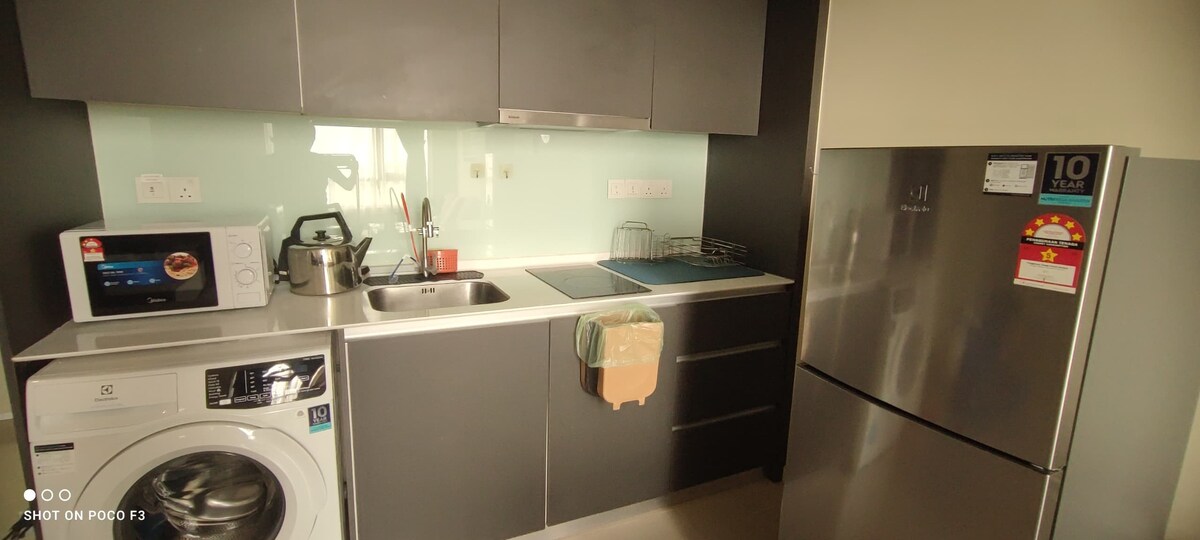 @ Spacious Lakeview studio unit. @ High floor lélegzetelállító kilátással a Putrajaya-tóra. @ 45” Smart TV Netflix, Disney+ Hotstar és YouTube szolgáltatással. Minden hozzáférés ingyenes. @ Nagy sebességű szélessávú WI-FI hozzáférés. @ Hűtő, mikrohullámú sütő, légsütő, tűzhely, vízforraló és konyhai eszközök az alapvető konyhai használathoz. @ Mosógép szárítóterülettel. @ Kényelmes king méretű matrac. @ Tisztítsd meg a fürdőszobát forró zuhanyzóval. @ Klubház létesítményei @ Cuckoo vízszűrő @ Intelligens zárral történő belépés