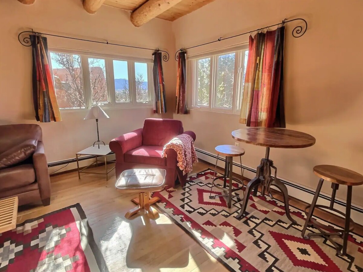 Az El Prado gyönyörű környékén található Casita Corazon csendes, békés, otthonos fészek a Taos Ski Valley és Taos városa között. Ez az 1000sq.ft 1 hálószobás casita a főépülethez van csatolva a tulajdonosával a helyszínen, teljes magánszférával és privát számbillentyűzetes bejárattal. Lesz: king méretű ágy, légkondicionáló, teakonyha(nem teljes konyha) a reggeli kávéhoz, közeli múzeum és sétautak. Tökéletes hely a felfedezéshez. A tulajdonosok korábbi szállodatulajdonosok/éttermek, akik szeretik megosztani Taos iránti szeretetüket.
