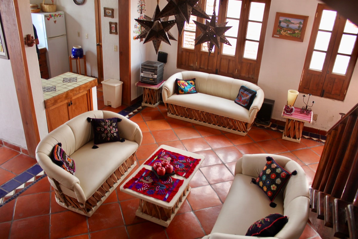 Az erdőnek ezt a részét a nagy fák, a madarak, a mókusok, a nyulak és a csillagos éjszakák jellemzik, amelyek a tábortüzek és a jó hangulat jegyében nagyszerű hellyé teszik, ahol kapcsolatba léphetsz magaddal. Élvezhetsz egy toszkán stílusú kisházat, ahol minden kényelmet megtalálsz, ami nagyon otthonossá teszi. Éjjel-nappali biztonság. Tökéletes romantikus tervekhez, pihenéshez, vagy azok számára, akik a rutinon kívül szeretnének dolgozni. 15 percre Tapalpa belvárosától.