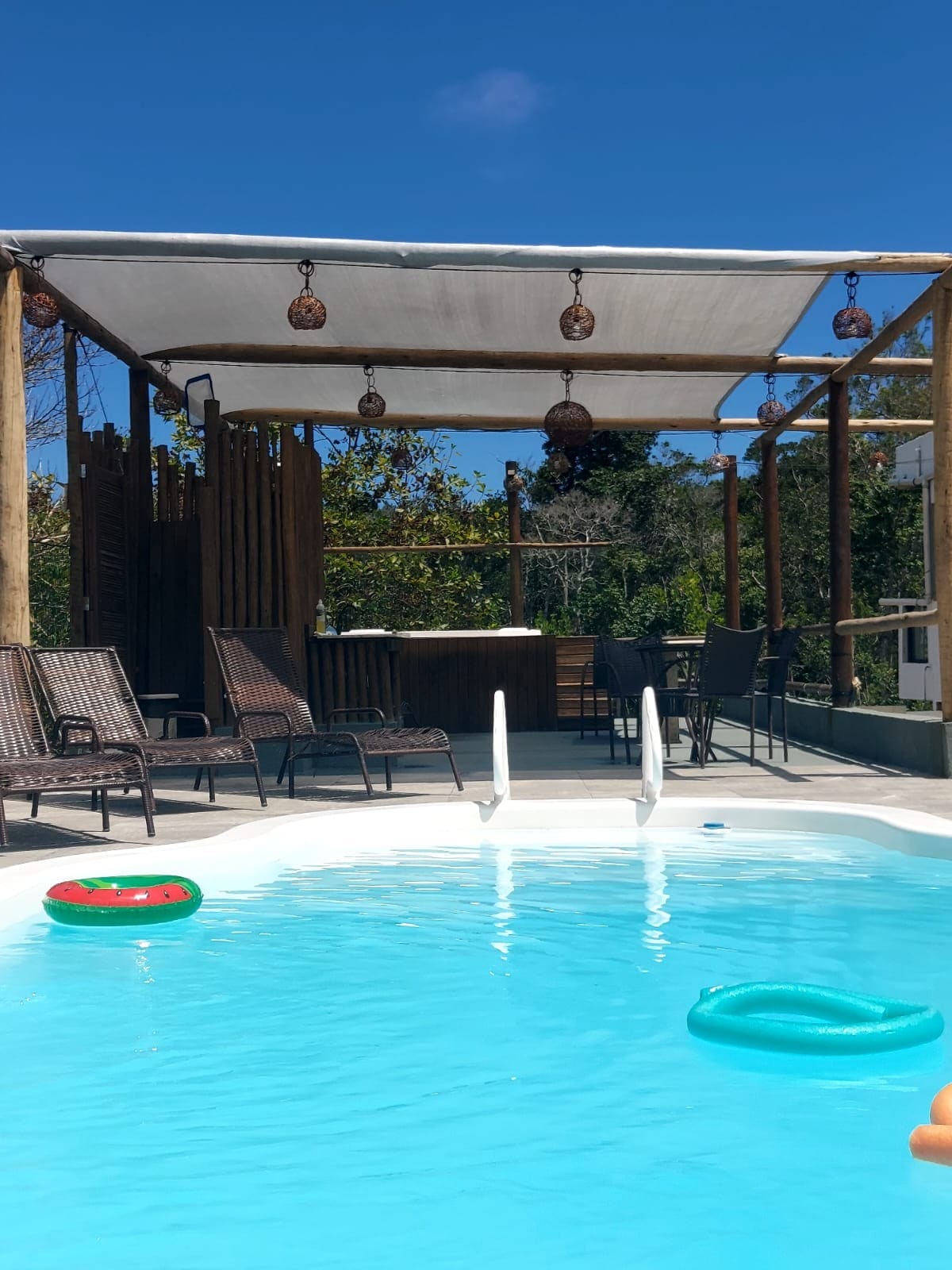 Egy nagy, medencés ház 2 erkéllyel, gyönyörű kilátással és tökéletes klímával a pihenéshez, szabadidőhöz és napsütéses napokhoz Arraial d'Ajudában. Akár 4 fő is kényelmesen elfér. A faházban a következőket találod: • 🛏 Franciaágy • 🛏 hálószoba, ideális gyerekeknek, barátoknak vagy családnak • ❄️ Légkondicionálás • 🧊 Minibár • Teljesen felszerelt🍽️ konyha indukciós tűzhellyel és edényekkel