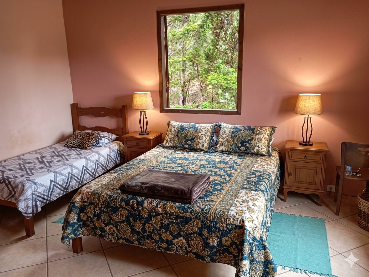 A propriedade fica pertinho de BH (a 65km do centro). Casa 1 - Q1 - suíte com cama de casal e cama de solteiro / Q2 - cama de casal + triliche / Q3 - cama de casal + triliche Casa 2 - Anexo - Q1 - cama de casal e beliche/ Q2 - cama de casal + triliche / Q3 - cama de casal São duas cozinhas, uma externa, integrada na área de lazer, e outra mais privativa, equipada para festas com fogão industrial. Há freezer para cerveja na propriedade. A propriedade fica a 3,5km da Cachoeira das Lajes.