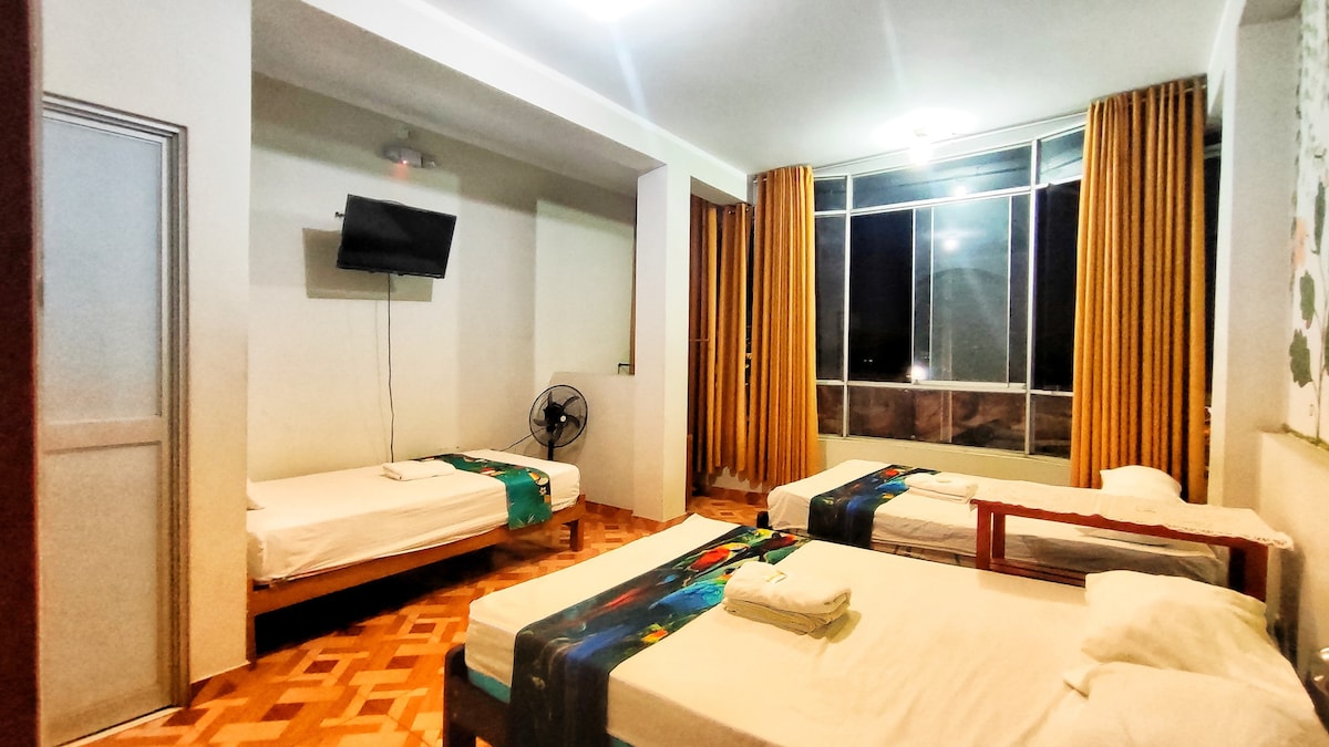 A nagyszülők háza egy 500 m2-es, régi vágású ház, amely két háztömbnyire található Tarapoto főterétől és a híres „Calle Las piedras” mögött, nagy terasszal, TV-vel/kábellel, Wi-Fi-vel és ventilátorokkal rendelkezik minden hálószobában, 3 fürdőszobával és gyógyfürdővel a vendégek használatára, víz éjjel-nappal, parkolási szolgáltatás az ingatlan előtt (felár ellenében). A teraszon grillezhetsz, és napnyugtakor egy kényelmes függőágyban pihenhetsz.