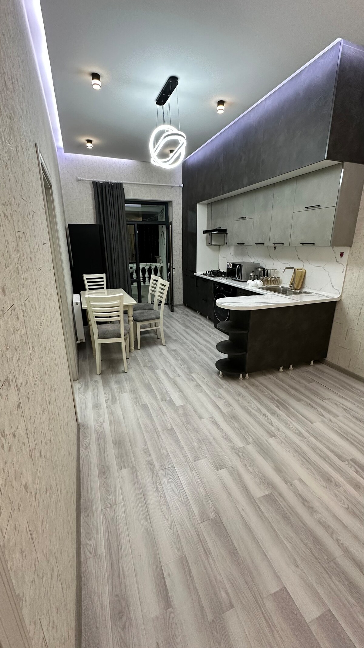 Modern lakás Tashkent City szívében | Boulevard residential complex Érezd a kényelmet és a stílust ebben a hangulatos, 60m2-es, 2 hálószobás lakásban. A belső tér elegáns, világosszürke tónusokból készült, márvány részletekkel és lágy megvilágítással. A tágas erkélyről egy csendes, zöldterületű udvarra nyílik kilátás. ✨ A lakásban minden megtalálható, amire szükséged lehet a csodálatos foglalásokhoz: • Teljesen felszerelt konyha (beépített Bosch készülékek, edények, vízforraló stb. • Hangulatos hálószoba nagy ággyal és TV-vel