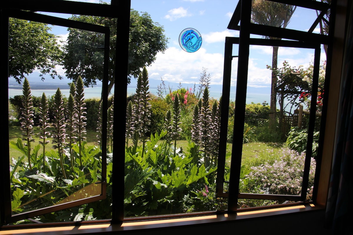 Gorgeous views and bird song, with complimentary breakfast cereals tea/ coffee. Beautiful, fully refurbished private studio, attached to larger home. Own entrance, deck, ensuite, kitchenette-not full kitchen. Overlooking Tasman Bay, Nelson Haven, Boulder Bank, Mountains of the Abel Tasman National Park and Garden - Home to native birds eg Tui and Piwakawaka. Tranquil base to relax and explore the region. 400m from the coastal walking/cycle trail. City 5 min drive, 40 min walk, 15 min bike ride.
