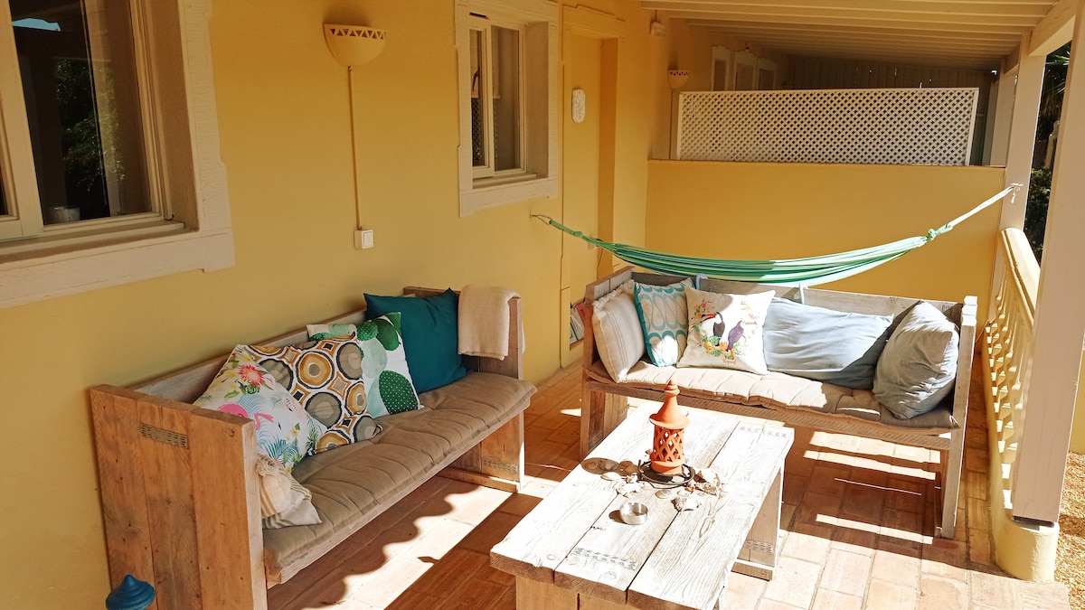 Welcome to our bed & breakfast. Ideally located to discover the Algarve with its magnificent beaches. La Casa Cabana with patio, lounge, tv and hammock. Have breakfast (included) on the terrace, enjoy fresh orange juice from our orchard. Relax by the salt water swimming pool and enjoy the barbecue area in our 9000 m2 garden. Typical restaurants nearby. “Praia da Fuseta” and the “Ria Formosa” nature reserve are 10 minutes away! Estelle and Damien 154958/AL