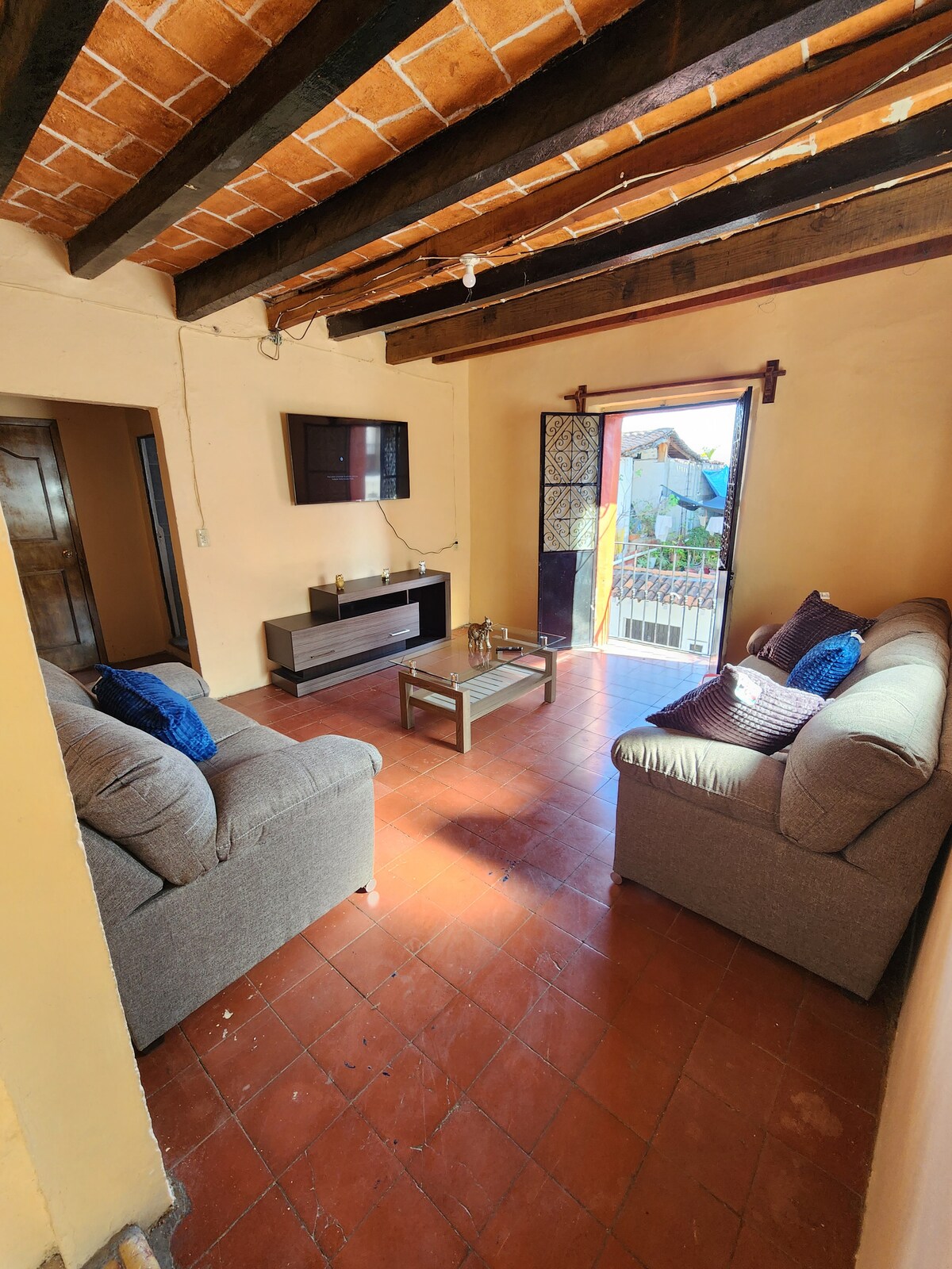 Welcome to Casa Adobe—your cozy colonial retreat in the heart of Taxco. Just 1 block from the plaza, enjoy stunning views of Santa Prisca Cathedral from your private balcony. This charming 2BR home features a queen bed, 2 bunk beds, a front porch with comfortable seating, a bright living/dining area, and a functional kitchen that opens to a balcony w/breathtaking views of the cathedral and city. Nestled down a quiet alley, it’s a short walk to cafés, shops, and plaza life. Public parking nearby.