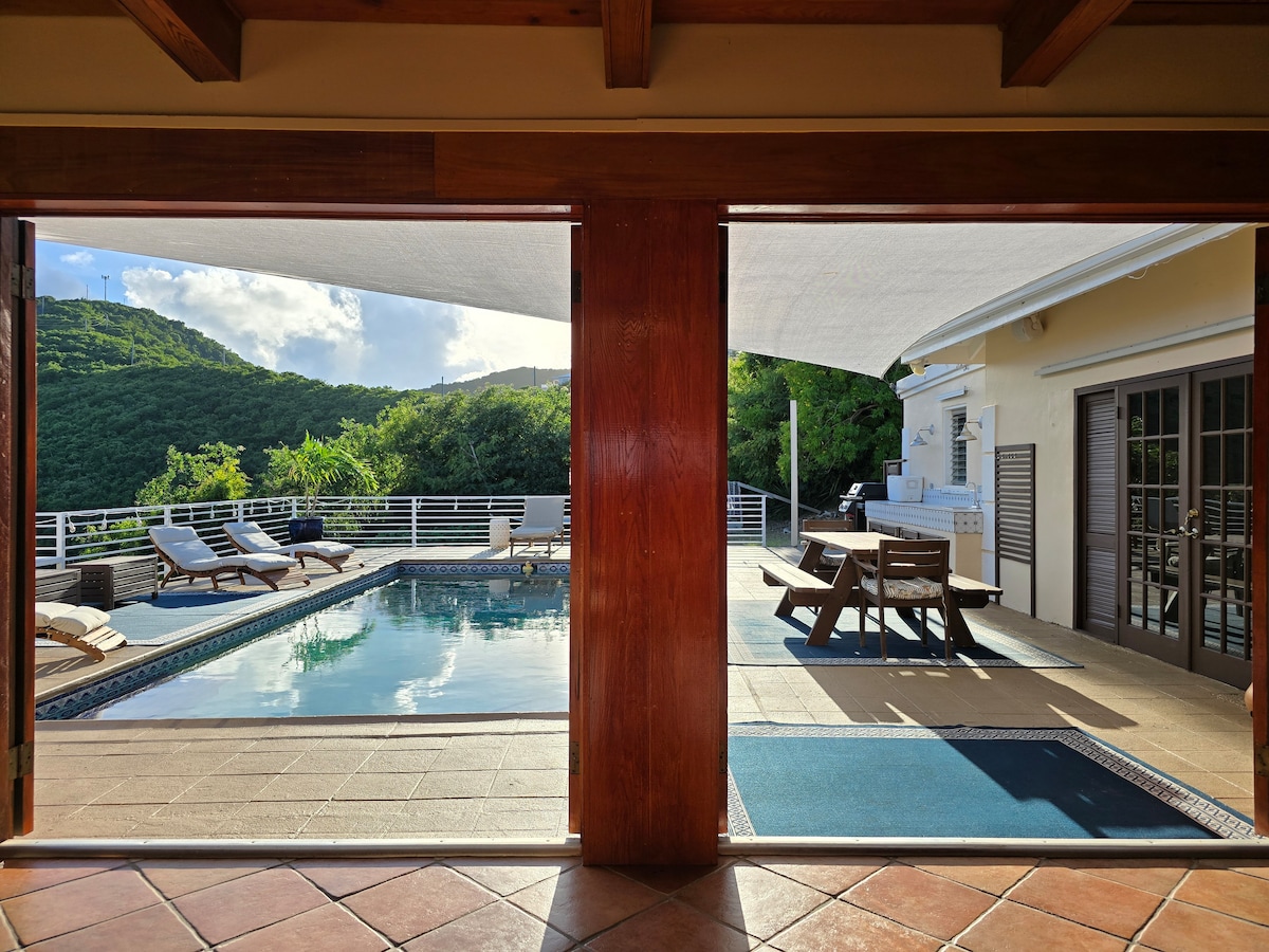 Ez a félreeső hegyi oázis, amely a sziget közepén található, panorámás kilátást nyújt a Salt River Bayre, a Buck-szigetre és a környező szigetekre. Egy tágas stúdió saját verandával és külön bejárattal egy zöldellő udvarról, amelyet egzotikus növényvilág díszít, lenyűgöző 180 fokos óceáni tengeri tájat kínál. Élvezd a gyönyörűen parkosított területeket, a japán pavilont és a jacuzzit, miközben hallgatod a törő szörfözés hangját, és amelyet állandó kereskedelmi szelek hűtenek. A romantika és a kikapcsolódás tökéletes keveréke.