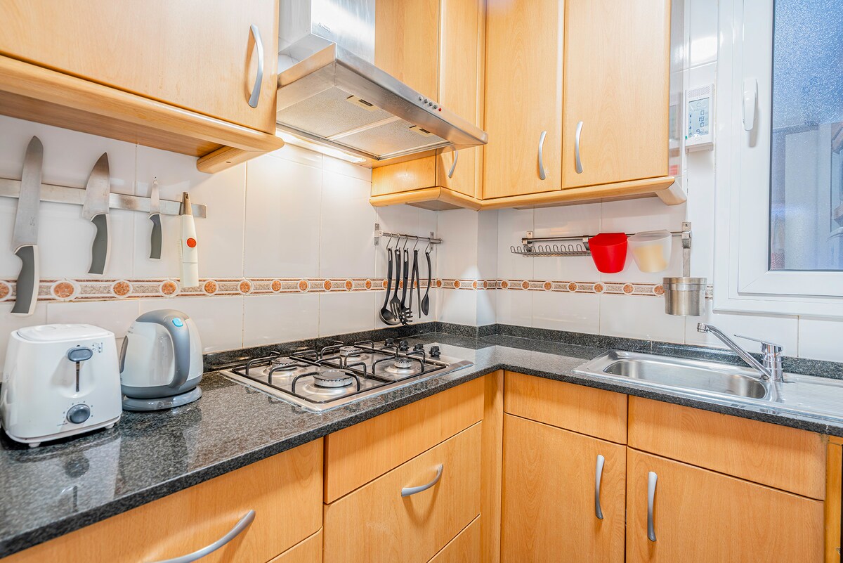 Ebben az 55 m² -es lakásban van egy kétágyas hálószoba, egy hangulatos nappali erkéllyel, egy teljesen felszerelt konyha és egy fürdőszoba – minden, amire szükséged van ahhoz, hogy otthon érezd magad. Maximális kapacitás: 4 fő (kétszemélyes kanapé 2 vendégnek) A legalább 7 éjszakás foglalások esetén heti takarítást is biztosítunk. További takarítási szolgáltatásokat felár ellenében lehet lefoglalni. Ágynemű és törölközők az árban. A hirdetésben szereplő fényképek némileg eltérhetnek a kiválasztott lakásodtól.