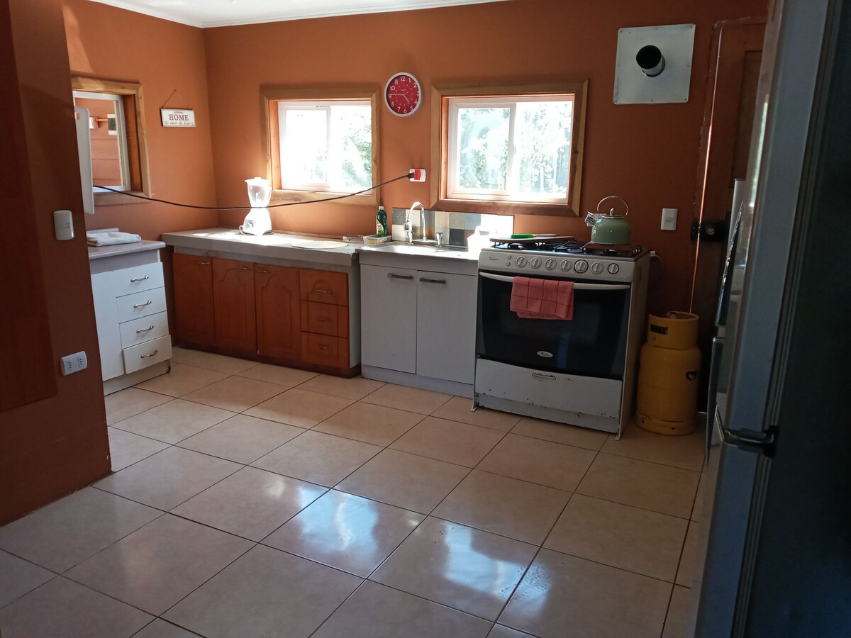 Hangulatos ház Valdiviában 🏡* 🗺 Természetes környezetben, 10 percre Valdivia belvárosától. - 🛏 2 teljesen felszerelt hálószoba: 1 hálószoba franciaággyal + 1 tévé, 1 hálószoba franciaággyal – 🛁 1 nagy fürdőszoba – 🍳 Nyitott konyha – 🪑 Nappali/étkező • 🚗 Parkolás legfeljebb 3 járműnek – 🌳 Nagy terasz – 🥓 Nagy terasz grillezővel – 🌅 Fűtés – ❎Háziállat nem hozható (az ingatlan területén más állatok élnek: kutyák, csirkék, pávák)