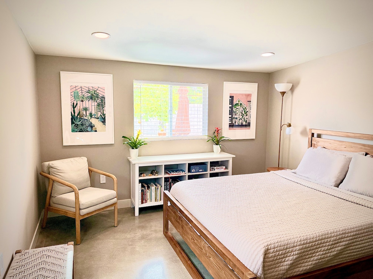 Ne bonyolítsd túl a dolgot ebben a békés Tempe belvárosi vendégházban. 10% kedvezményt kapsz a legalább egy hétre szóló foglalásokra, és 20%-ot a 28 napnál hosszabb foglalásokra. Sétatávolságra van a Mill Avenue üzleteitől és éttermeitől, valamint az ASU-tól. Parkolj le az utcáról, és a saját bejáratodon keresztül közelítsd meg. A konyhában két főzőlapos indukciós tűzhely és mikrohullámú légkeveréses sütő található, ha helyben szeretnél enni. Saját terasz is rendelkezésre áll gázgrillel. Van mosogatógép és mosó-szárítógép az otthon minden kényelme érdekében.