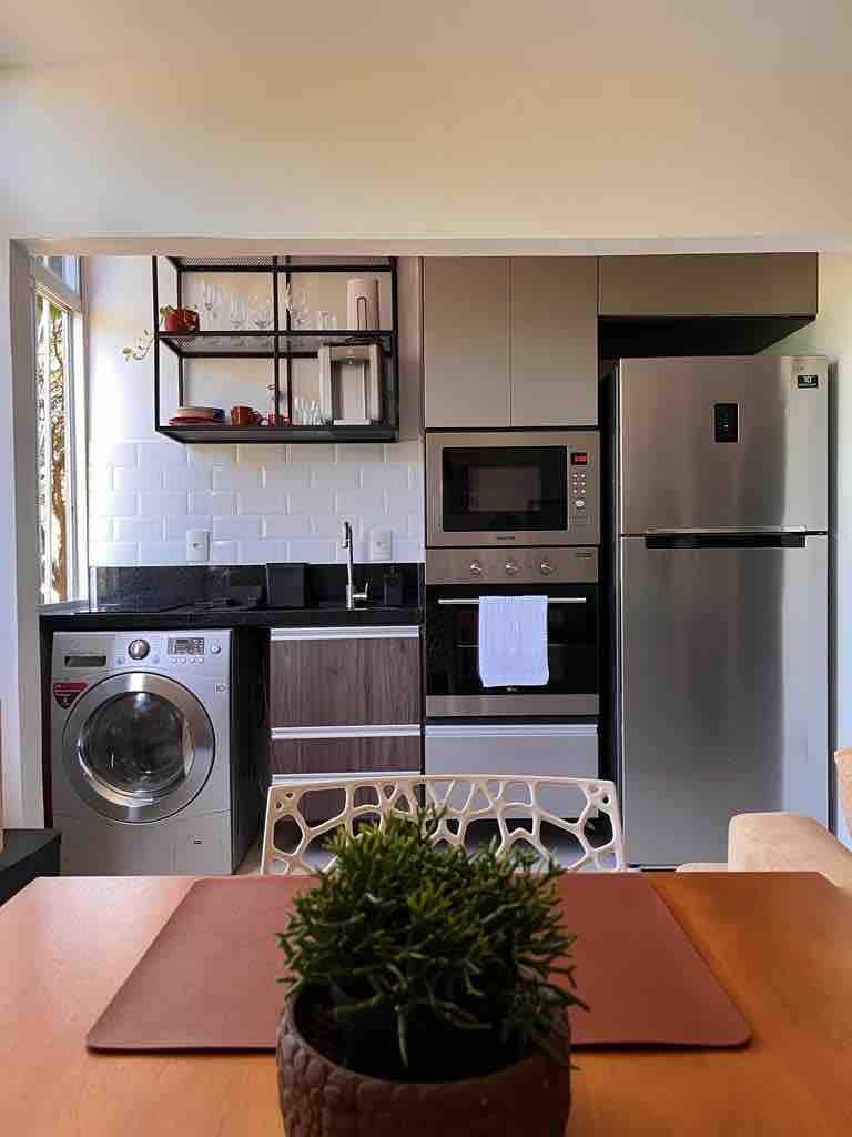 A Charmosa Kitnet két környezetre oszlik. A szobában kényelmes, queen méretű ágy, új ágynemű és fürdőszobai törülközők, valamint arc várja a vendégeket. A konyhában háromszemélyes edények, főzőedények, edények és evőeszközök találhatók. A lakásban van légkondicionáló, hűtőszekrény fagyasztóval, mikrohullámú sütő, Wi-Fi és kábeltévé, valamint kanapéágy a nappaliban. A lakás mindössze 10 percre található a repülőtértől és Brazília belvárosától, valamint a Bevásárlóközpont és a buszpályaudvar mellett.