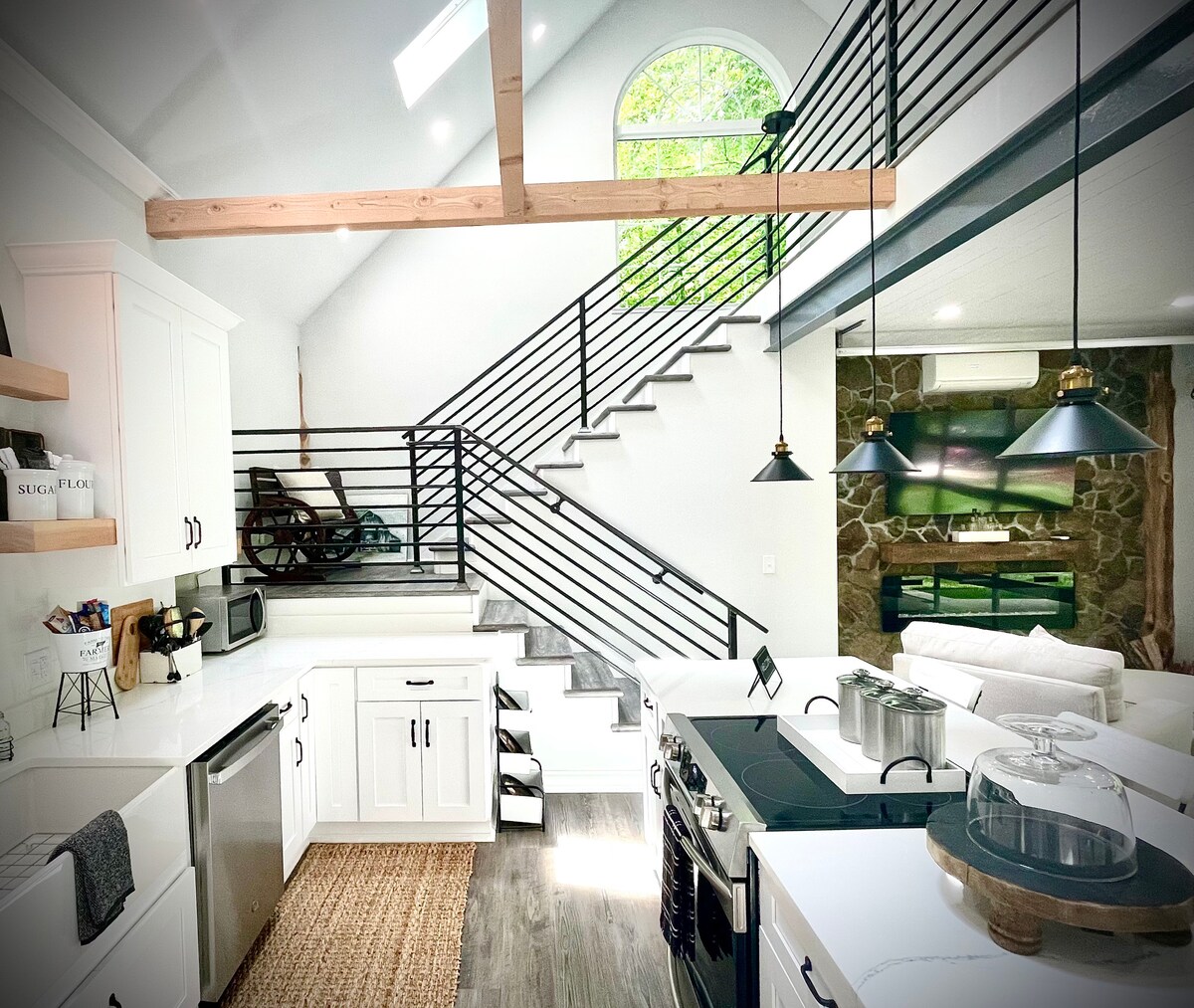 The Barn Chalet at Laurel Park is anything but ordinary. Every detail of the Barn has been thoughtfully renovated & designed to merge old with new, rustic with modern, & function with originality. In the country, yet only 1 mile from downtown Cleveland - come explore 8 acres of ponds, trails, woods, & babbling brooks. Bring your pole and fish our three ponds, walk next door to the park and play disc golf, or just relax on the patio and listen to the sounds of the forest.
