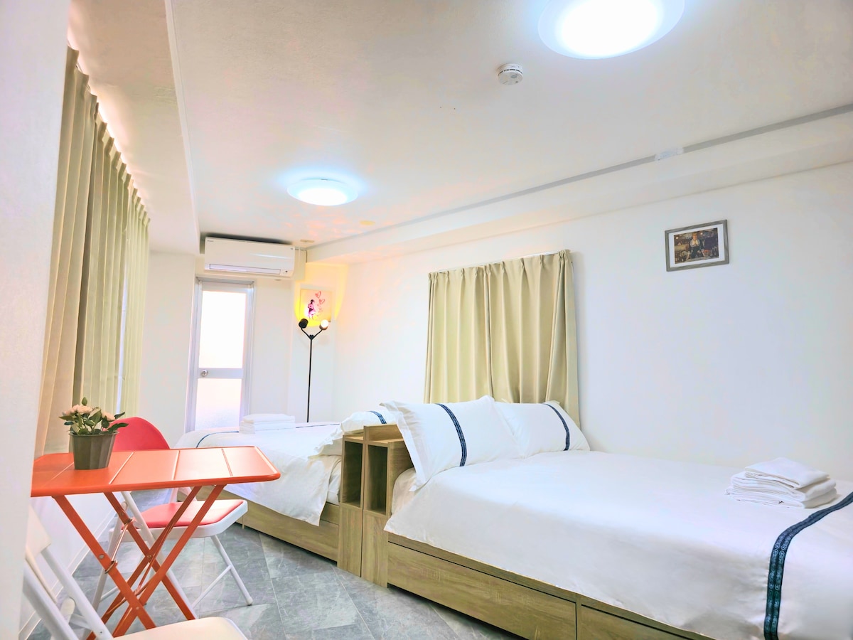 Szia! Megtiszteltetés, hogy el tudtál navigálni a panziómba.Az oszakai Chuo-kuban található ház egyetlen kétemeletes, háromszobás házban épült egy kis sikátorban, csendes és pihentető, jó közbiztonsági irányítás, kényelmes közlekedés, valamint 650 méterre a „Tanimachi 6-chome” és a „Tanimachi 9-chome” metróállomástól.Távolság a Kintetsu Nara vonaltól: Osaka Uehonmachi 650m, egy metróállomás közvetlenül Dotonboriba, két közvetlen megálló Shinsaibashiba.Négy vonal elég egyszerű. Ez a ház egy kétéves ház, amelyet egy dizájner baráttal újítottak fel.A közepe sok csavaron és fordulaton ment keresztül, és a stílusválaszték ötvözi a japán stílust a modern, vagyis a modern, teljesen felszerelt létesítményekkel.Azt is lehetővé teszi, hogy az emberek megtapasztalják a japán élet stílust.A japán földterület szűkössége és tömörsége miatt.Az egycsaládos épület nagy részének problémái lesznek azzal, hogy a szomszédok eltorlaszolják őket.Az első emeleten viszonylag gyenge a világítás, és a második emeleti hálószoba is jobb.A japán sötétítőablak miatt biztosítottam az embereknek világos vak függönyöket.Az első alkalom miatt a munka nagy részét saját magad végzed, beleértve a beszerzést, a telepítést stb.Nincs gyakorlati tapasztalat (láthatod a buborékokat a második emelet hátsó falán, hiányos szőnyegeket stb.), de minden tőlem telhetőt megteszek, hogy jó hatást mutassak.Ha nálam szállsz meg, a hiányosságok miatt először is minden tőlem telhetőt megteszek, hogy minden vendégnek megfeleljek, és a lehető legjobban kielégítsem az igényeidet.Nyugodtan szállj meg a családoddal ebben a csodálatos házban, és élvezd a rengeteg helyet és tevékenységet, hogy felejthetetlen emlékeket szerezz az oszakai utazásodhoz.