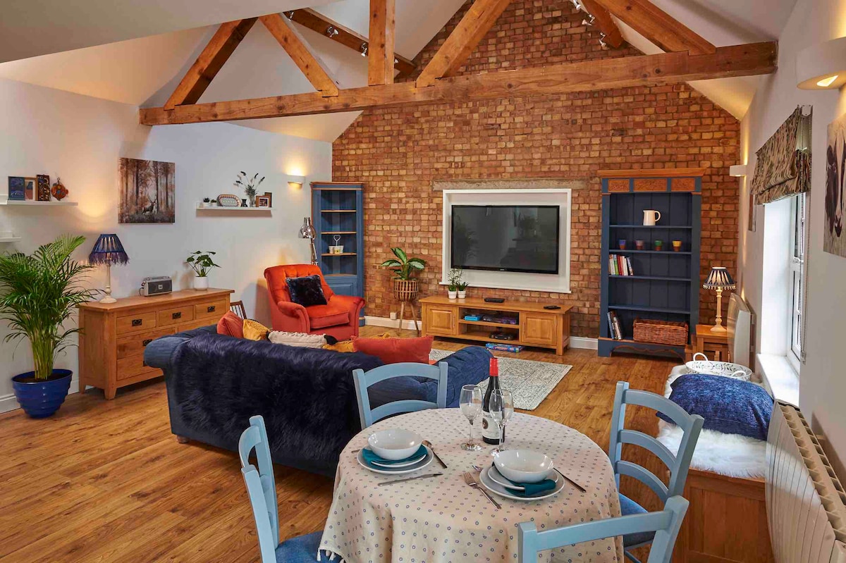 Nemrég díszített, tölgyfa keretes melléképület, amely nagy, nyitott terű társalgóból, étkezőből és konyhából áll. Zuhanyzó kézmosóval és WC-vel. Az emeleten, kényelmes kétágyas hálószoba. (Két egyszemélyes ágyra alakítható) Extra kanapéágy áll rendelkezésre a földszinten, hogy a szálláshely akár 4 vendég elszállásolására is alkalmas legyen. Megbízható wifi és hely a távmunkához. Kicsi, diszkrét privát terasz. Privát parkolás. Közel a golfpályához és a falu központjához. Vedd körül magad stílusosan ebben a különleges térben.