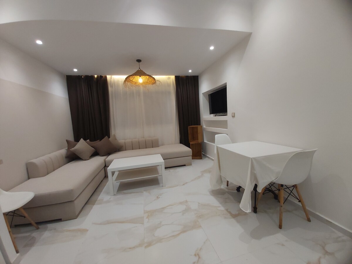 Enjoy luxurious accommodation in the heart of Martil, just 1 minute from the beach. 100MB fiber optic, Smart TV, and newly furnished. Quiet and prestigious building. Guide for activities, restaurants, and tourist attractions available. Contemporary comforts and close to all amenities. Maximum 5 people with one double bedroom, one bedroom with 2 single beds, 2 sofa beds, and a very well-equipped kitchen. Marriage certificate required for Moroccan couples.
