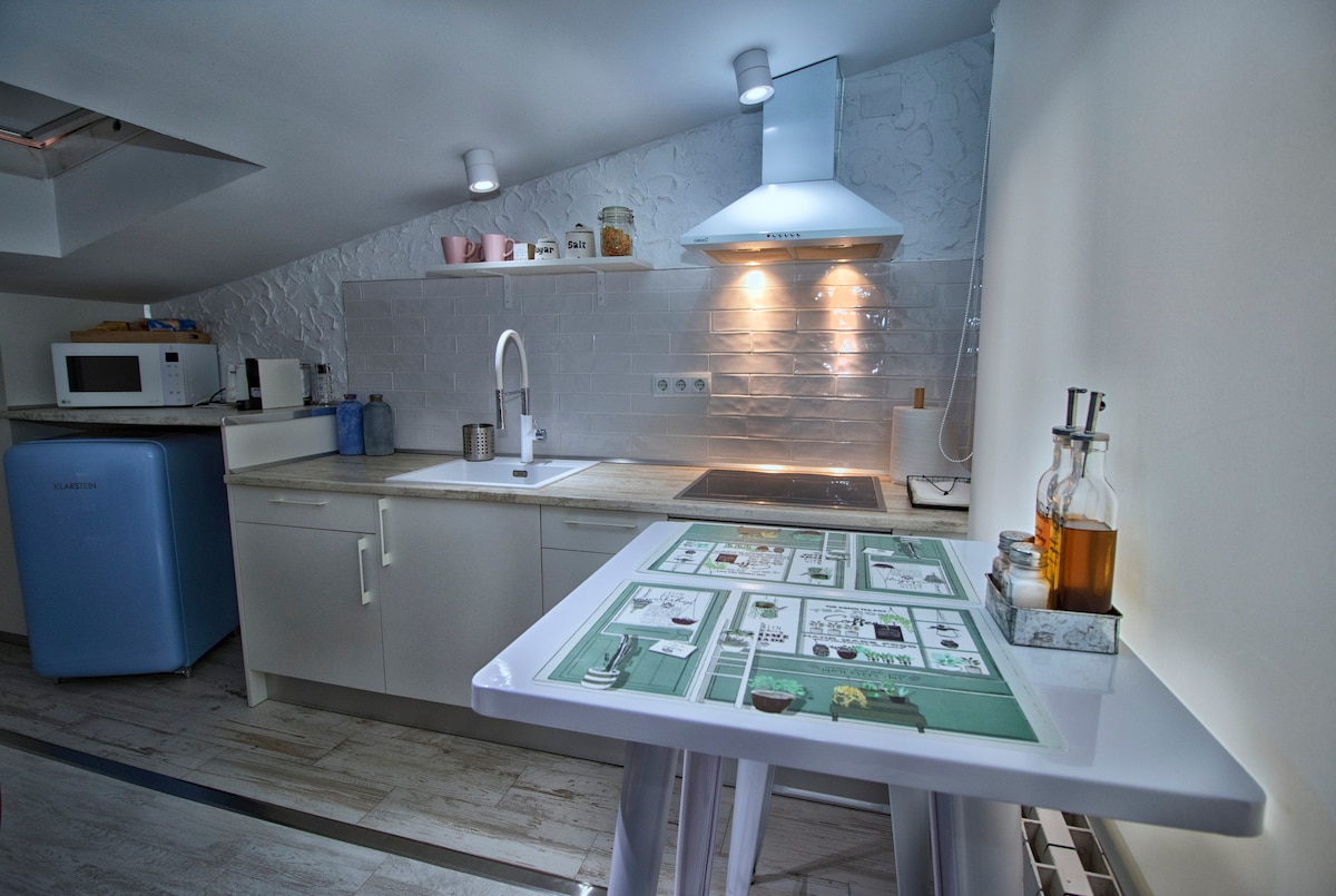 Ebben az újonnan felújított stúdióapartmanban minden megtalálható, amire szükséged lehet az élethez, a munkához és a játékhoz. A praktikus dolgok mellett, mint a teljesen felszerelt konyha, mosógép, légkondicionáló, gyors Wi-Fi, nonstop ügyfélszolgálat és rendszeres professzionális takarítás, szórakoztató dolgokat is találsz, például okostévét. Maradj kényelmesen, ameddig csak szeretnél – napok, hetek vagy hónapok.