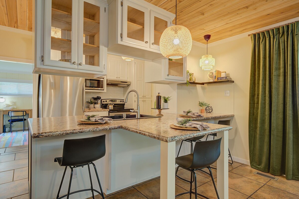 Nyugodj meg ebben az egyedi és nyugodt kiruccanásban. „Made in the shade” 1950, 2 hálószobás, 1,5 fürdőszobás otthon gyönyörű árnyékkal, farm bájjal és eredeti keményfa padlóval borított karakterrel. Csendes környék, szép hátsó udvar, pihentető hátsó veranda szép kilátással a tóra. Hozd magaddal a horgászfelszerelésedet, és próbáld ki a szerencsédet. 415 Estates és Tree Haven esküvői helyszín, butik, régiségbolt, étterem 15 percen belül. Kerekesszékkel rendelkező szálláshelyek. Háziállatbarát, további 50 dolláros háziállatdíjjal.