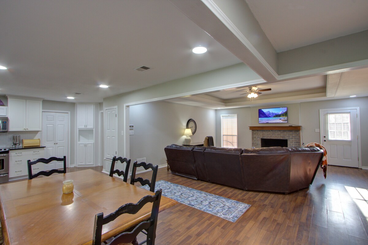 Discover a beautifully renovated home that combines modern style with central convenience. Located just minutes from shopping and dining, this home is the perfect base for your next trip. Each room is equipped with smart TVs to keep everyone entertained, while the fenced backyard invites you to relax and unwind. Fire up the grill for an outdoor dinner or enjoy the nearby amenities Whether you're visiting for leisure or work, this home offers the perfect blend of comfort and accessibility.