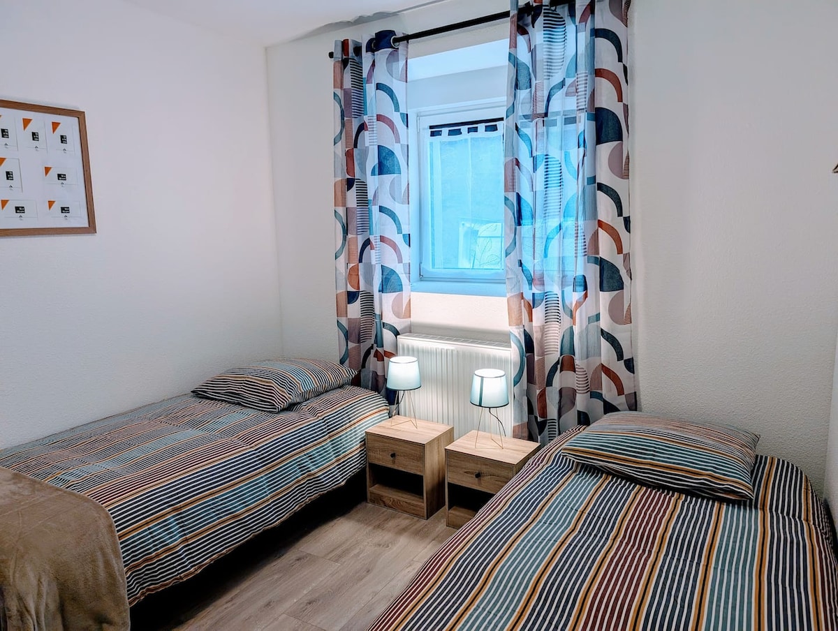 Ha kényelmes szálláshelyet keresel egy rövid tartózkodáshoz Mulhouse-ban, arra kérünk, hogy látogass el a lakásunkba. A városközponttól 10 perc sétára található, egy csendes lakóövezetben, közel a villamosmegállóhoz és az autópályához. Ingyenes parkolás az épület körüli utcában. A körülbelül 18 m2-es lakás 2 fő elszállásolására alkalmas, kényelmes franciaággyal, TV-vel, internettel, kávéfőzővel és sok más szükséges elemmel rendelkezik a kellemes tartózkodás érdekében.