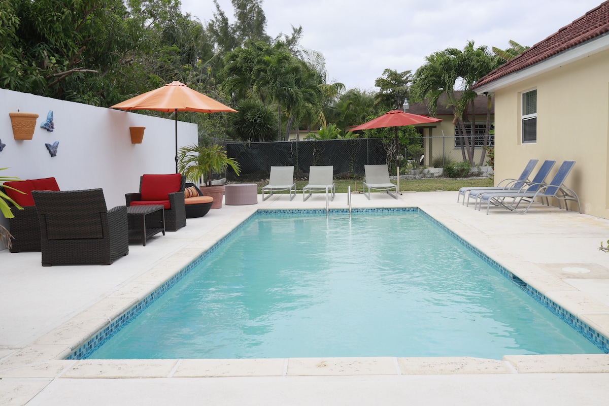 Élvezd az úszást, a kajakozást és a búvárkodást a küszöbön és a látványos óceánparti kilátást ebben a Nassau keleti csücskében található, vízparti, zárt közösségi otthonban. Tapasztald meg a napfelkeltét és a holdkeltét a hátsó teraszról, és - télen - a fantasztikus naplementéket. Itt található az IGAZI Bahamák, távol a forgalmas turisztikai csomópontok, mégis egy 15 perces autóútra. Tartalék áramforrásként egy generátort tartalmaz. *FIGYELMEZTETÉS: Foglalj közvetlenül az Airbnb-n, és NE foglalj külsős vállalatokat vagy bárkit, aki a nevemet használja az Airbnb-n kívül.