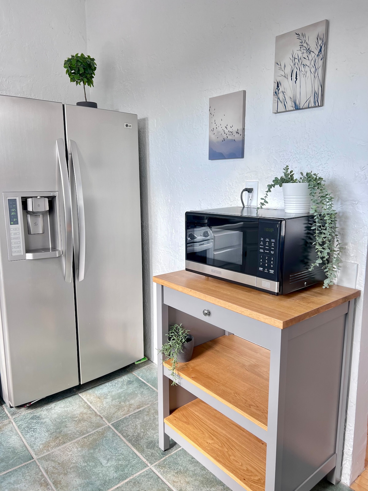 Beautifully decorated one bedroom brick bungalow enjoy the luxurious yet charming feel of the custom gourmet kitchen with large island, quartz countertops, combination of solid and glass front cabinets top-of-the-line stainless steel smart appliances ask Alexa directions, weather or play music and the LG smart refrigerator’s Wi-Fi screen will answer. All tile bathroom with European shower glass, subway tiles, rain showerhead with optimal water pressure This unique place has a style all its own.